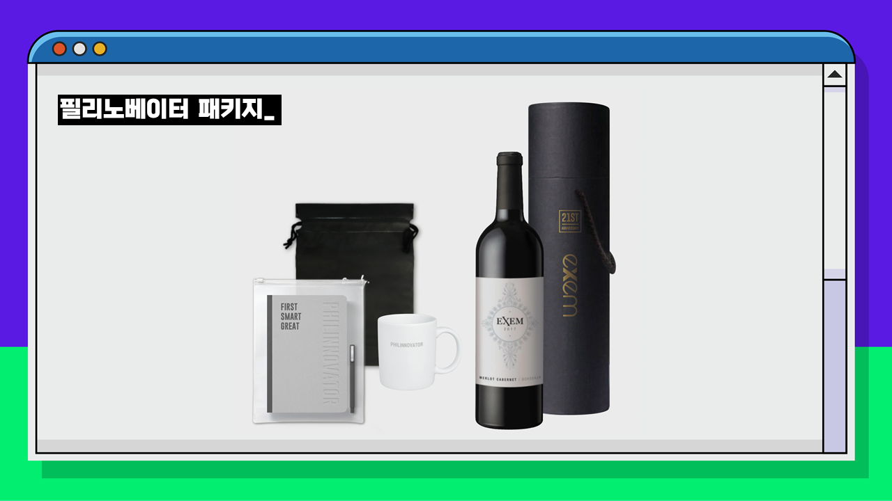 그리고 엑셈의 모든 임직원이 ‘필리노베이터’임을 새기고, 더욱 필리노베이터를 향해 정진하자는 의미로 ‘필리노베이터 패키지’와 ‘엑셈 와인’을 전 직원에게 전달했습니다. 필리노베이터 패키지는 필리노베이터 다이어리와 볼펜, 그리고 필리노베이터 머그컵으로 구성했습니다.
