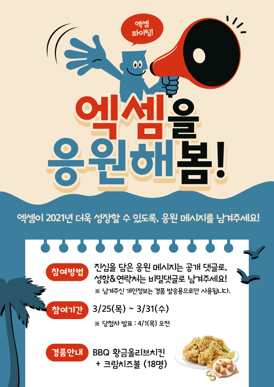 | 엑셈 콘테스트 | 엑세머의 변화를 응원해 (0) | 2021.02.09 |