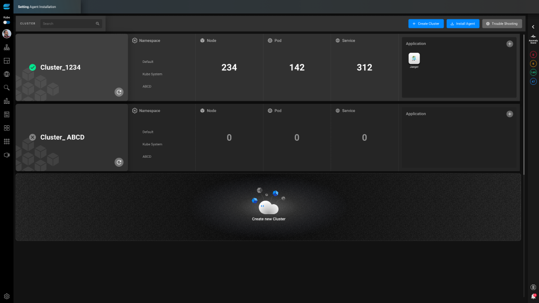 ▶ 1단계 : 클러스터 관리 화면을 통해 신규 클러스터 생성 및 에이전트 연동 현황 관리