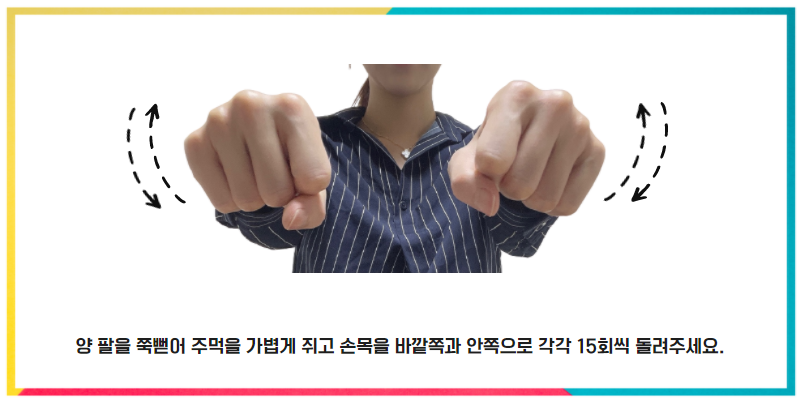 * TIP : 뚝뚝 소리가 난다면 손목이 경직된 상태입니다~ 열심히 해주세요!