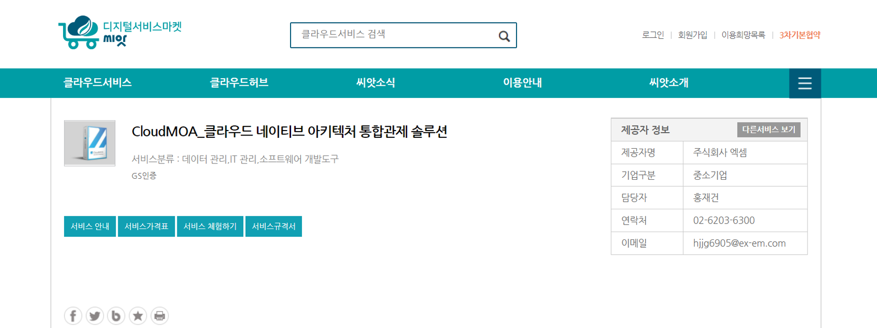 과학기술정보통신부와 한국정보화진흥원(NIA)에서 운영하고 있는 디지털서비스마켓 씨앗은 다양한 클라우드 서비스를 한곳에서 검색/견적/선정할 수 있는 클라우드 서비스 전문 스토어입니다.