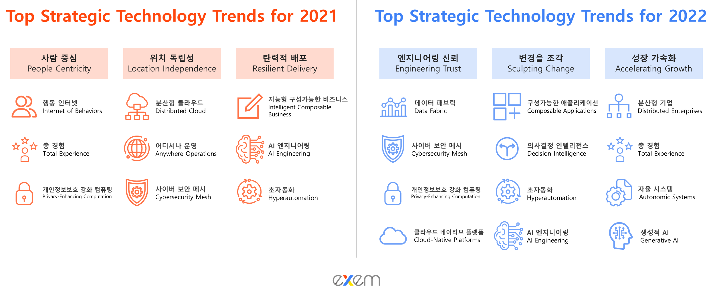 다가올 2022년의 기술 트렌드는 무엇이 될까요? 코로나19가 기술에 미친 영향은 어떻게 달라졌을까요? 향후 3~5년 동안 차별화된 로드맵을 설정하는데 참고할만한 가트너의 2022년 전략 기술을 살펴보겠습니다.