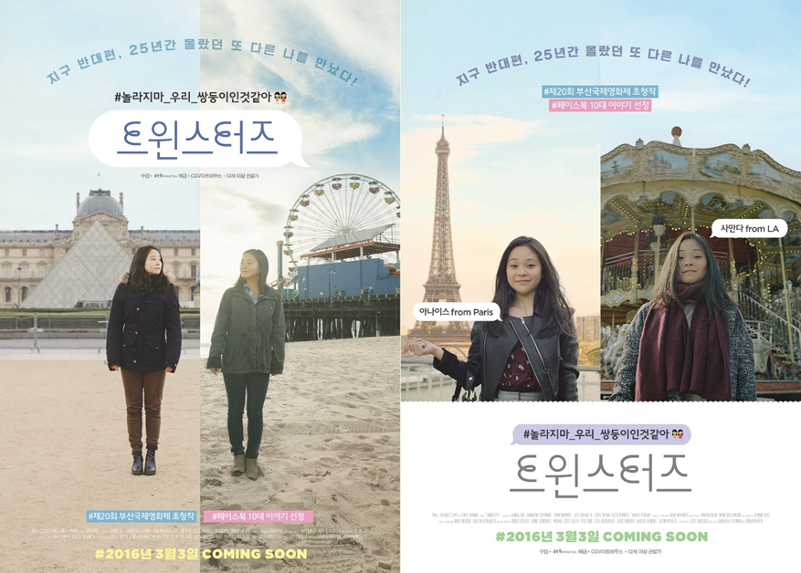 이와 같은 주제를 다룬 다큐멘터리 영화가 있습니다. 바로 2016년에 개봉된 89분 분량의 『트윈스터즈-Twinsters』라는 다큐멘터리 영화입니다. 서맨사 푸터먼(Samantha Futerman, 1987~)과 아나이스 보르디에(Anais Bordier, 1987~)라는 일란성쌍둥이 자매는 1987년 부산에서 태어나, 각각 미국과 프랑스로 입양됐었습니다. 서로의 존재를 모른 채 살았던 둘은 2013년 페이스북과 유튜브를 통해 자신과 똑같이 생긴 사람이 존재한다는 걸 깨닫고, 극적인 상봉을 합니다.