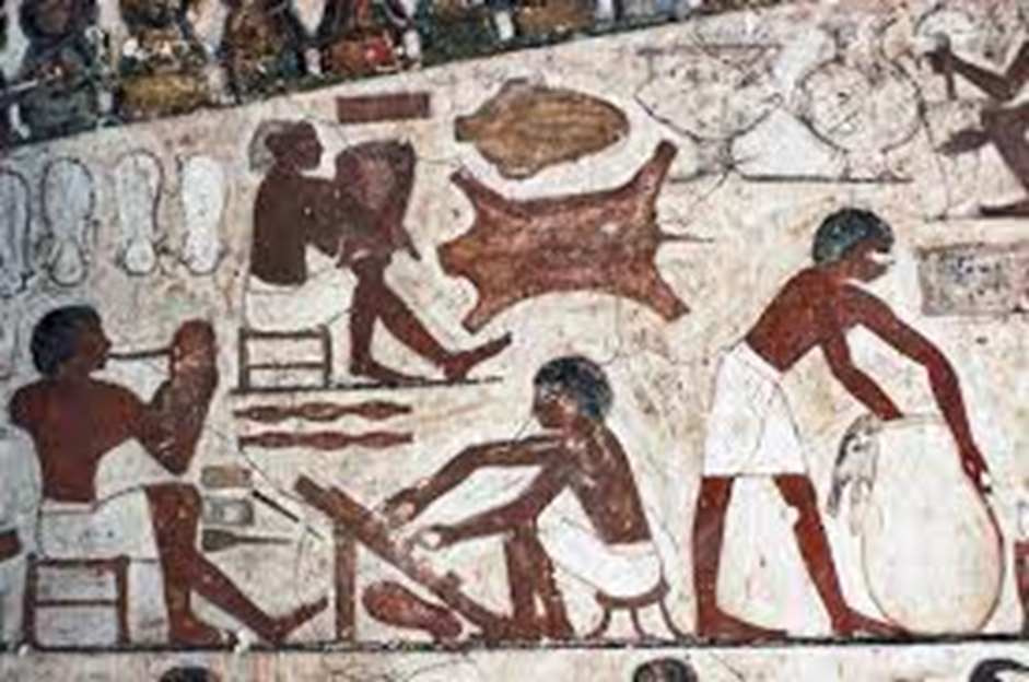 그러나 자연은 가혹했습니다. 털을 벗어 버린 인류는 빙하기를 여러 번 경험하게 됩니다. 인류에게 추운 날씨에 견디고 생존하기 위해선 보온이 될 무언가가 필요했습니다. 바로 동물의 털가죽이라는 물질이었습니다. 그러나 동물에게서 가죽을 벗긴다고 해서 그냥 사용할 수는 없었습니다. 먼저 살과 지방을 제거해야만 했고, 털 가죽의 성분 중 콜라겐이란 단백질을 변형해야만 부드러운 가죽을 얻을 수 있었습니다. 우연히도 햇빛에 잘 마른 가죽을 써보니 잘 썩지 않는다는 사실을 발견합니다. 최초의 ‘무두질’이었습니다. 가죽은 유분(油分)을 유지하는 게 중요한데, 단백질과 지방이 많은 물질을 가죽과 함께 넣고 끓이는 방법을 사용했을 거라 추정됩니다. 이런 방법은 신석기시대에 등장합니다. 이런 무두질 공정은 매우 높은 숙련도가 필요했습니다. 무두질이라 함은 삼중 나선 구조의 콜라겐을 연결하는 전자를 다른 물질과의 화학적 변형을 일으켜 견고하고 따뜻한 결합 구조로 연결시키는 방식이라 볼 수 있습니다.