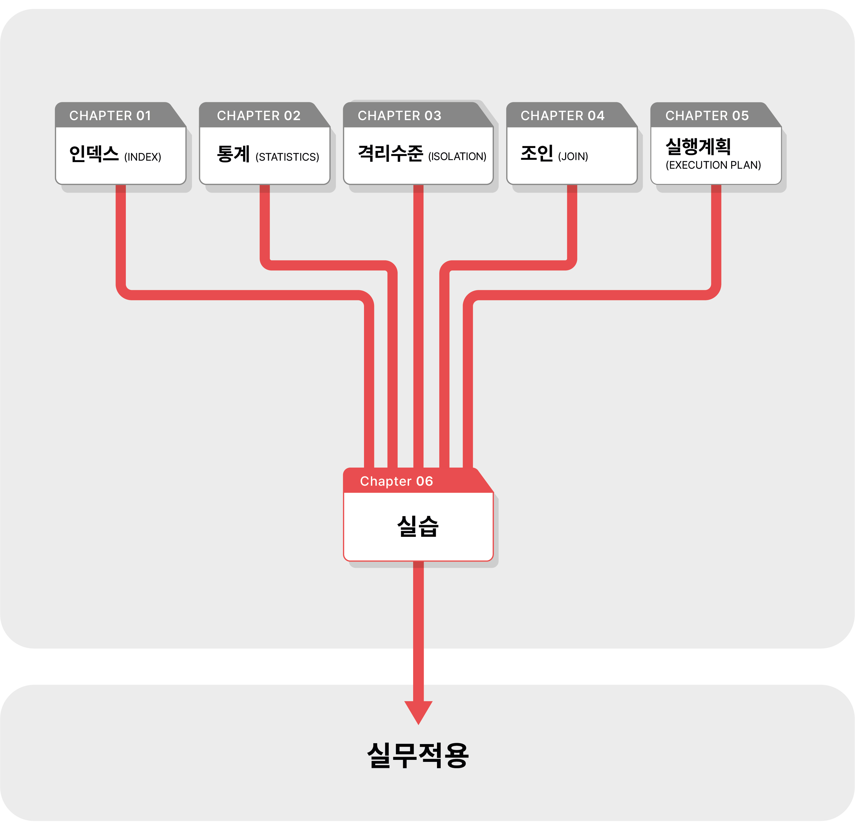 - 실습 : 컨설팅하며 얻은 다양한 성능 문제를 경험할 수 있도록 재구성된 실습 사례입니다. 이 장에서는 SQL의 튜닝 사례들을 통해 다양한 개선 포인트를 설명합니다.