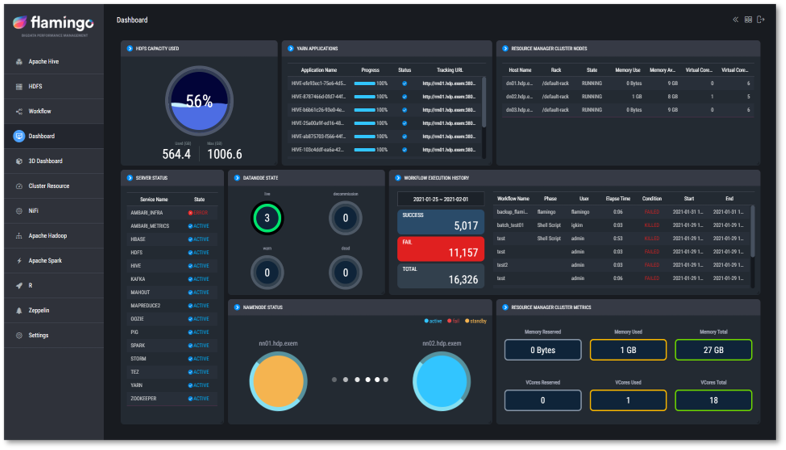 또한 엑셈은 한전의 ‘전력 ICT 대전센터 전력분야 재해복구시스템(DRS) 구축 사업’도 수행하고 있다. 이 사업은 MDMS, 송변전 시스템 등 재해복구 그룹들을 각각 실시간 복제 구성해 전력분야 재해복구시스템을 구축하는 사업이다. 엑셈은 컨소시엄 형태로 참여한 이 사업에서 전력 ICT 나주센터 내 기설치된 ‘클라우데라 하둡 배포판(CDH)’과 호환되는 ‘아파치 하둡 에코시스템(Apache Hadoop Ecosystem)’을 설치하고, 아파치 하둡을 지원하는 빅데이터 통합 관리 솔루션 ‘플라밍고(Flamingo)’를 구축한다.
