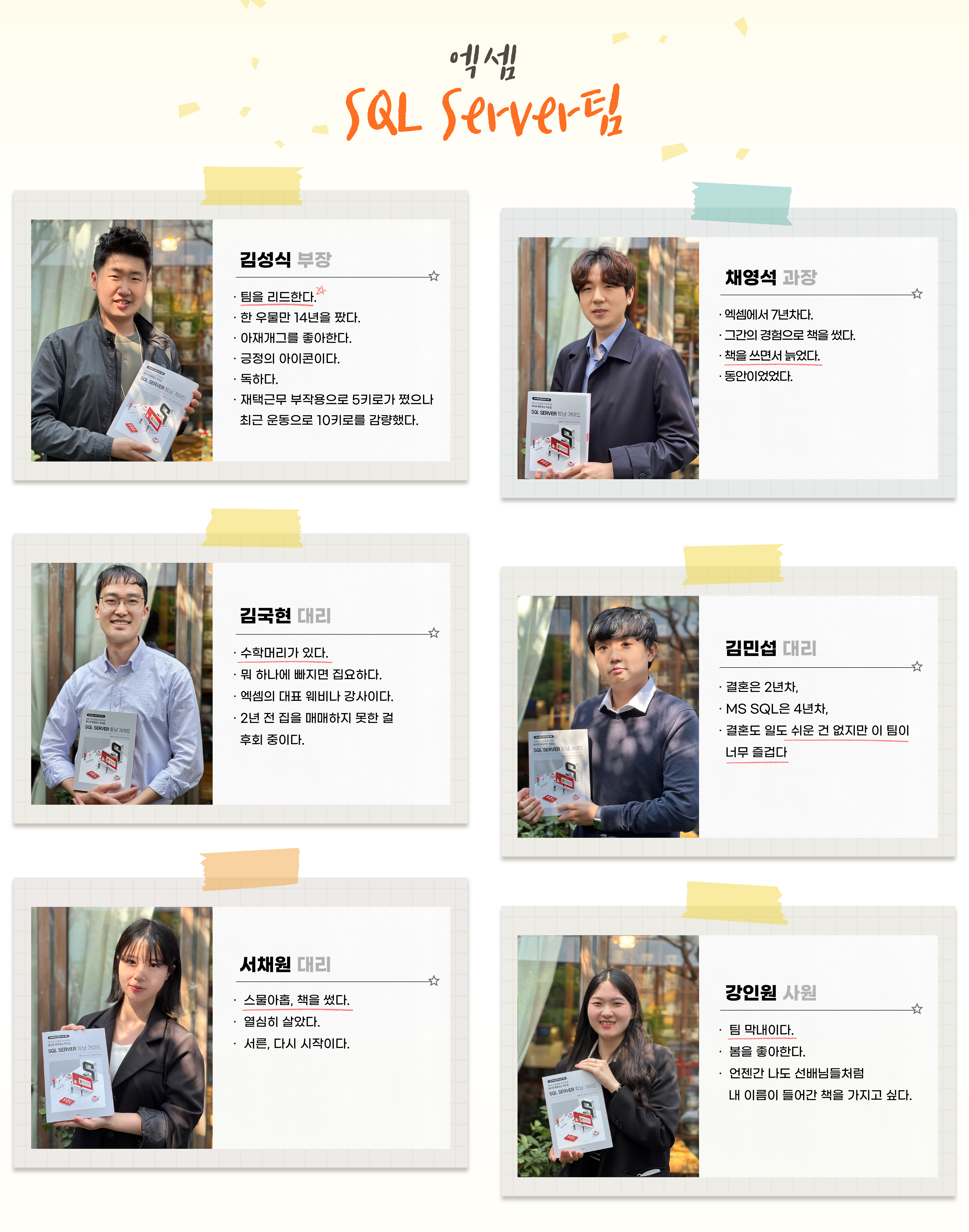 * 먼저 'SQL SERVER 튜닝 가이드' 출간을 너무너무 축하합니다. 대체 누가 이런 어마어마한 일을 해낸 건가요? 책을 만든 SQL SERVER팀은 어떤 팀인가요?