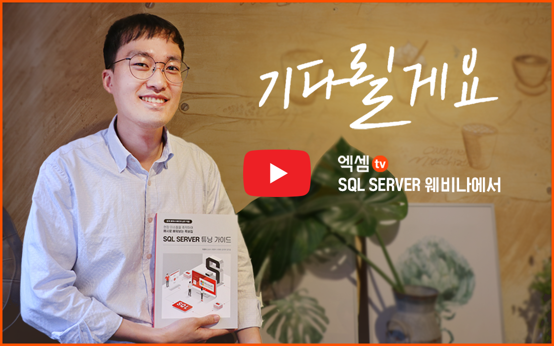 SQL SERVER 웨비나 인트로 영상을 보시고, 힘찬 응원의 댓글을 달아주세요. 화제의 신간 'SQL SERVER 튜닝 가이드'를 드립니다. 이벤트 바로가기😊