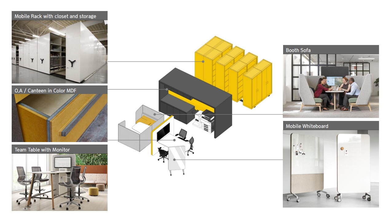 커뮤니케이션 방식이 바뀌었고, 비디오콜의 중요성도 커졌습니다. 개인마다 일하는 방식 또한 다릅니다. 누군가는 포커스룸에서 집중이 잘 되지만, 누군가는 밖에서, 누군가는 커피와 함께 카페에서 집중이 되기도 합니다. 그런 부분들까지 해결할 수 있으면서, 액티비티하게 공간을 사용할 수 있게 했습니다. 개인의 다양성을 인정하고, 어디서든 투명한 소통이 가능한 컬래버레이션 공간으로 활용될 수 있도록! 엑셈의 업무 공간은 창의, 혁신, 열정의 공간이 될 것입니다.