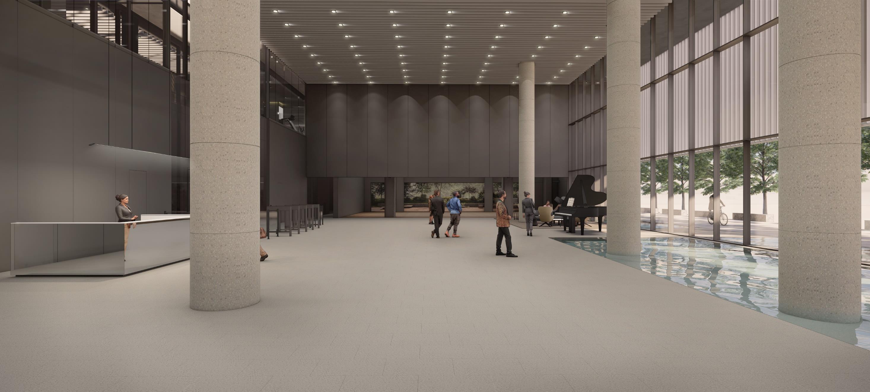 회사 로비에 도착하면 높은 천장고와 9미터 높이의 큰 창, 수반에 반사되는 물의 반짝임과 리셉션 데스크가 마주하고, 2층 유리 너머 러닝머신 위를 달리는 누군가의 부지런한 다리가 보인다.