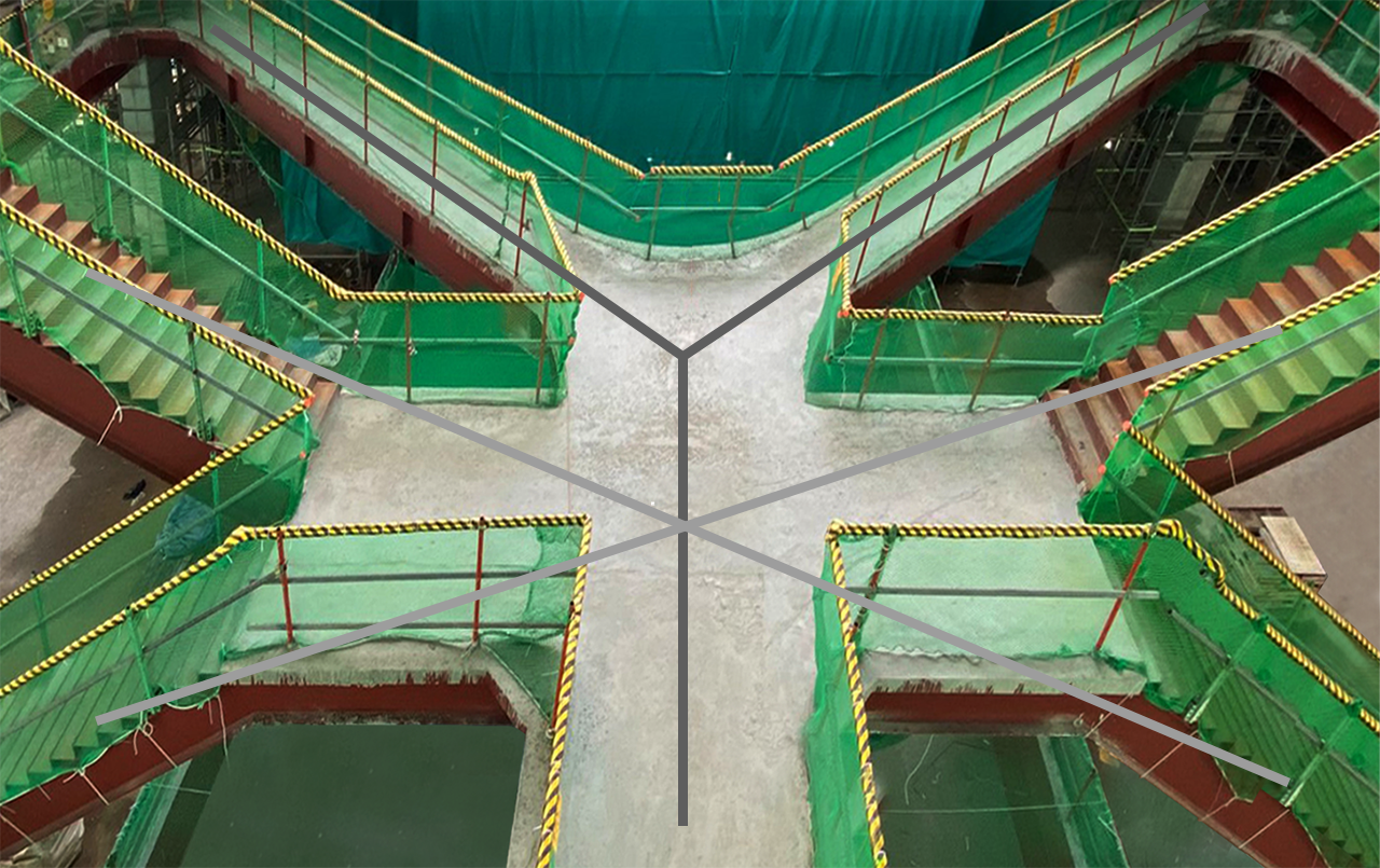 6층 보이드 Y자 브릿지, 5층과 7층을 연결하는 X자 계단, 그리고 3층과 4층의 시그마형 계단을 수학 기호로 2시그마 XY로 구현했습니다. 바로 업무공간 5개층을 통합시킨 구조입니다. 다수 층을 하나의 평면처럼 활용하게 하고, 직원들의 우연한 만남을 극대화하기 위한 많은 고민의 결과입니다. 각층의 독립적인 기능을 강화하면서도 열림과 닫힘 (개방성과 안락함)을 조화시켰습니다. 오며 가며 반가운 마주침이 가능하겠죠?