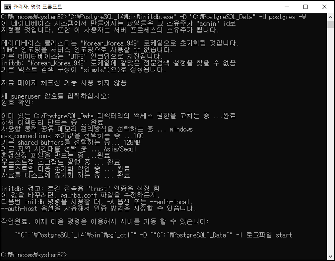 반면에 Ubuntu 등 Debian 계열의 Linux는 PostgreSQL Install 시 PostgreSQL Database 초기화 및 서비스 자동 시작이 되므로 initdb을 수동으로 수행할 필요가 없습니다.
