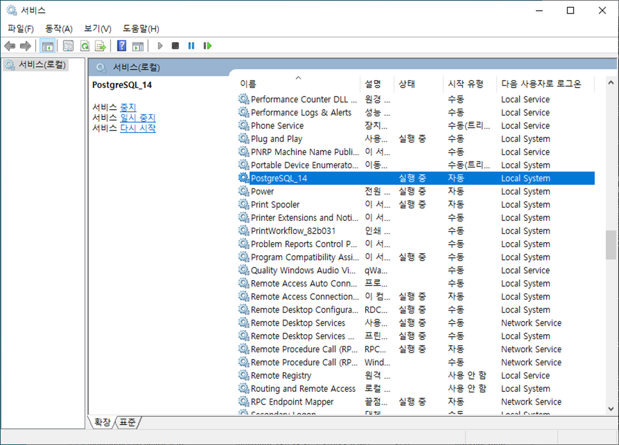 | 서비스명 | postgresql-{VERSION} | postgresql@{VERSION}-main | postgresql-x64-{VERSION} |