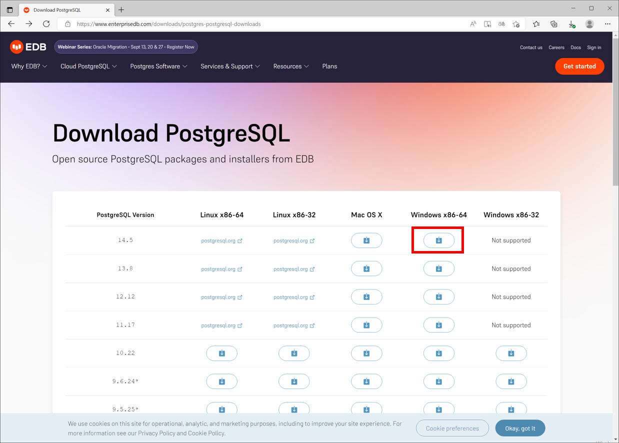 | Registration-required and trial products (EnterpriseDB Tools) |