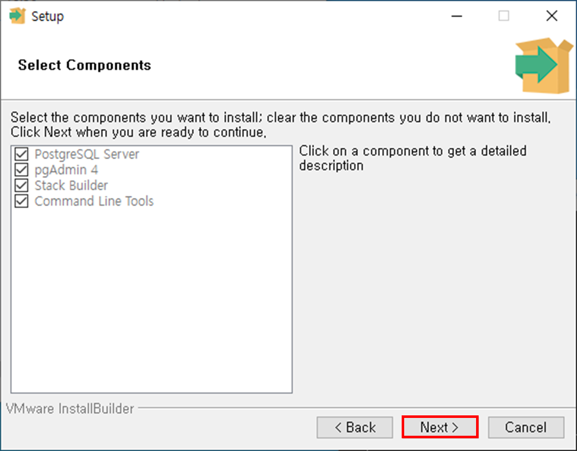 Step 2. 설치할 구성요소를 선택(or 선택해제) 후 Next 버튼 클릭