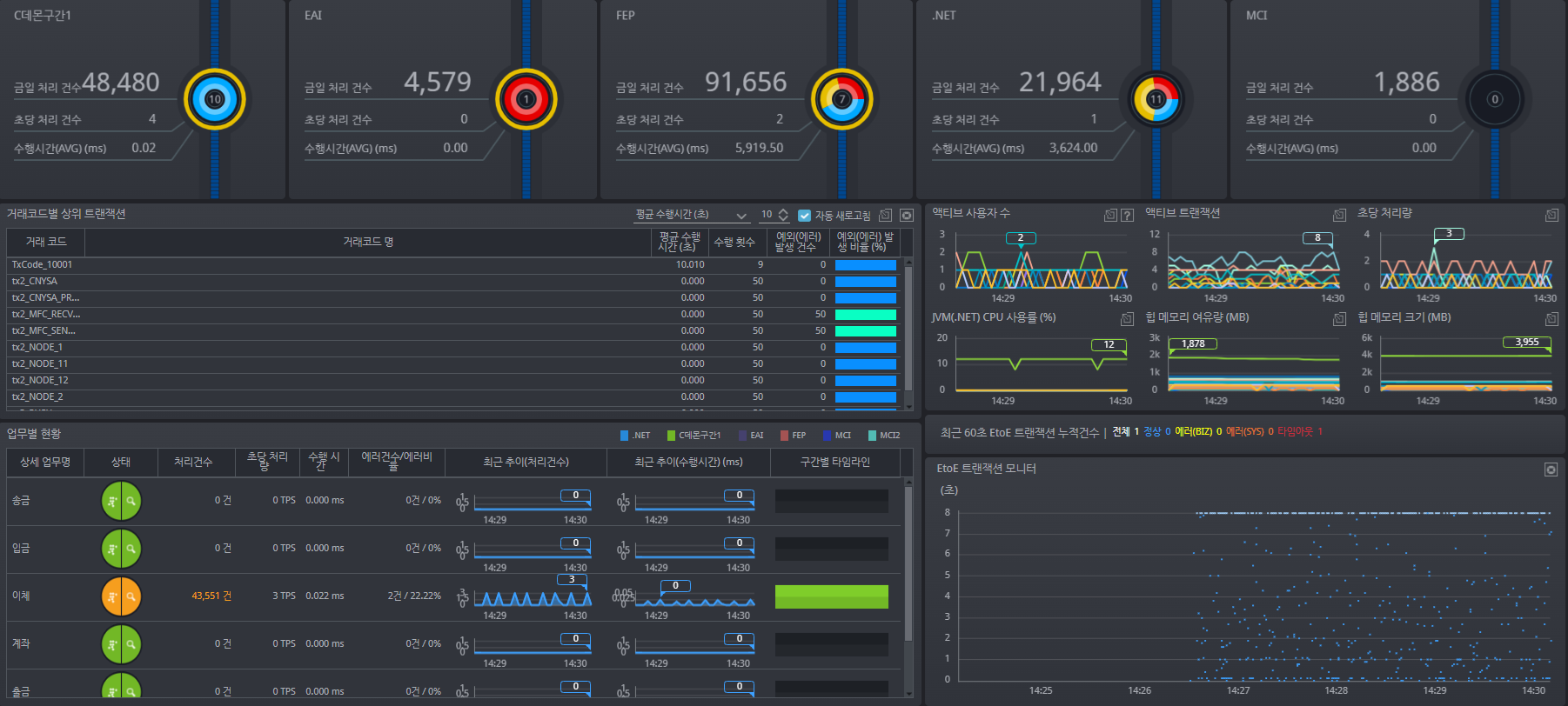 구축된 인터맥스를 통해 단위 테스트 시 각 업무 혹은 업무 코드별 성능 데이터를 추출하게 되며, 그 과정에서 병목현상이 확인되면 업무를 좀 더 세분화해서 나눌 것인지, 해당 업무를 처리할 Pod 개수를 늘릴 것인지를 다시 판단했다.