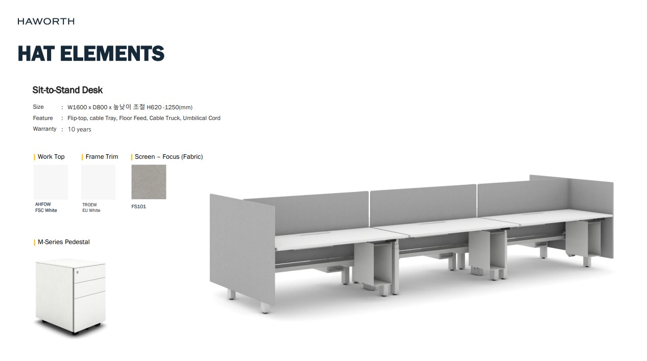 우선 책상은 HAWORTH 라는 미국브랜드 제품으로 큰 장점은 높낮이 조절이 모션으로 가능하고 아울렛이 매립되어 책상 위로 선이 너저분하게 나오지 않습니다. 모니터가 책상 상판에 매달려서 업다운 되기 때문에 케이블 손상 또한 최소한이겠죠.