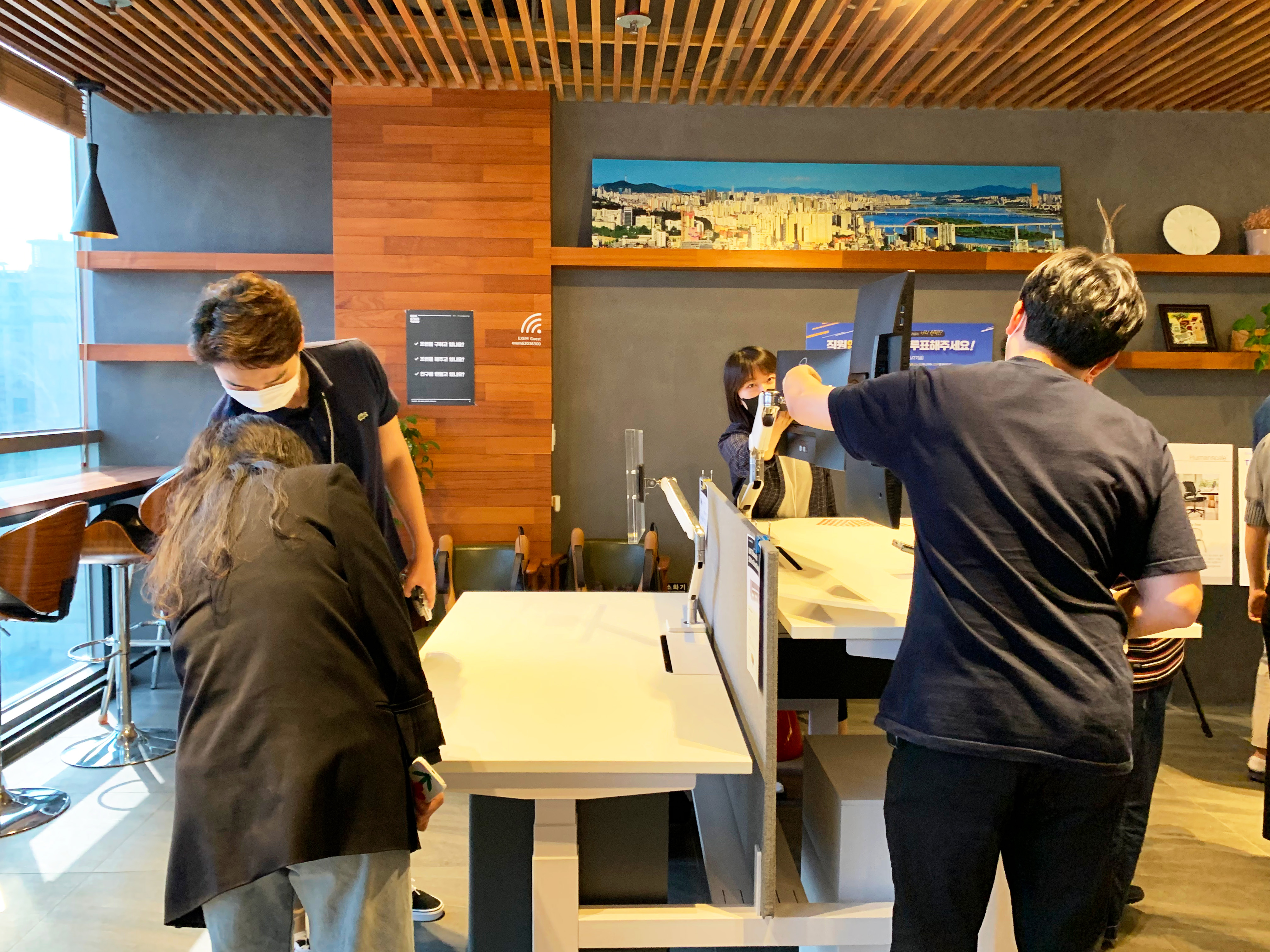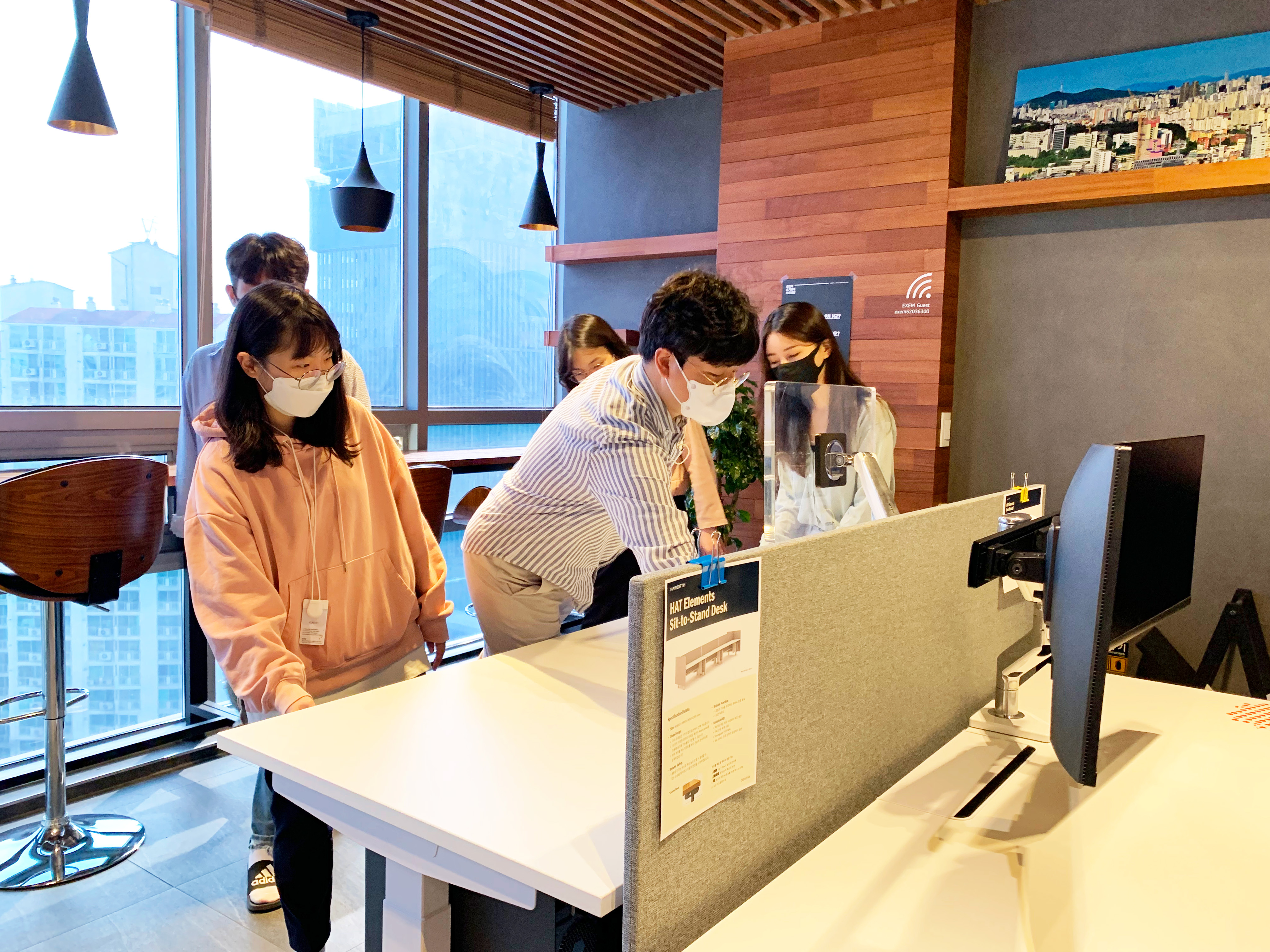 의자를 체험 후에 가장 마음에 드는 의자를 투표해서 집계 결과를 마곡센터에 반영하기로 했습니다. 5일간 임직원의 참여율은 80% 이상이었습니다. 사실 의자는 내 몸에 맞게 최적화되게 세팅하는 게 중요한 지라 많은 임직원들이 직접 사용하게 될 의자를 비교해 보며 신중하게 고민했습니다. 어떤 이는 체험 의자에 앉자마자 본인도 모르게 이렇게 말합니다. "이야~"