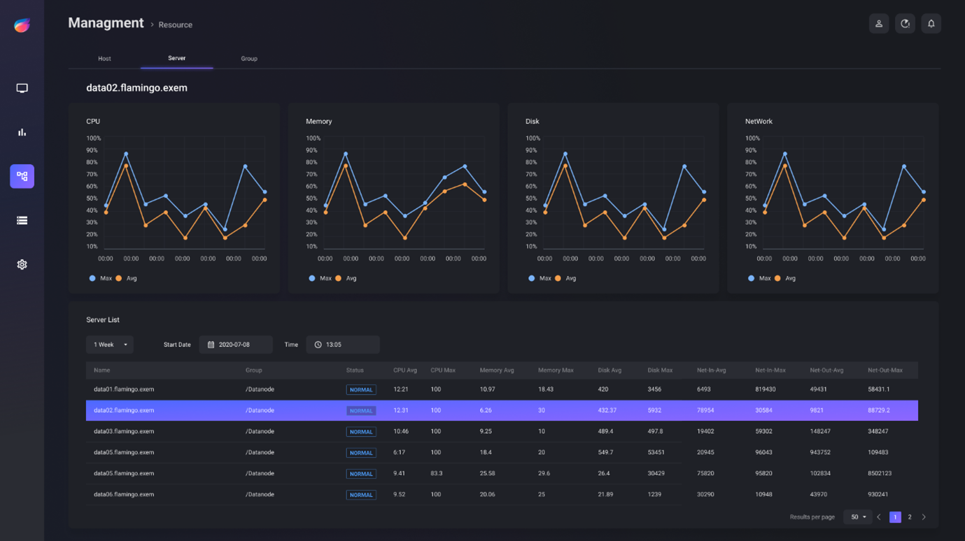 리소스 매니저가 관리하는 클러스터의 호스트정보 메모리, 코어 등의 요약 정보를 확인할 수 있습니다. - SERVER STATUS