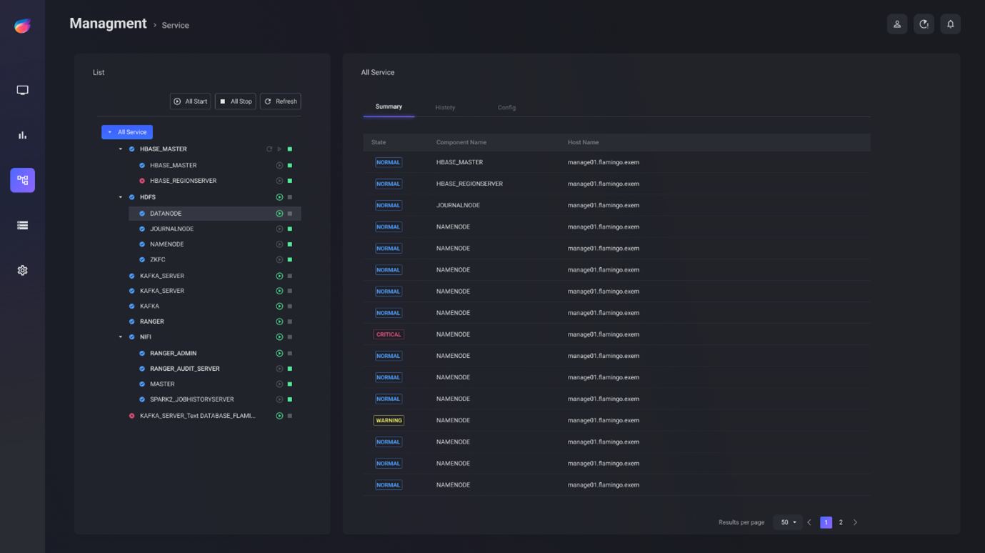 또한 이번에 새롭게 개발된 Service 관리 기능은 Hadoop Eco System을 손쉽게 실행, 종료할 수 있으며, 각 서비스의 성능을 개선하는 기능도 제공합니다.
