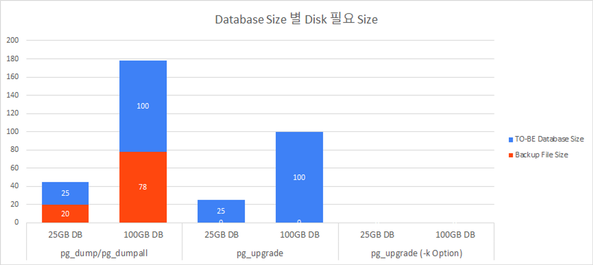 본 단락에서는 업그레이드 시간에 가장 큰 영향을 끼치는 Backup과 Restore에 대해 소요시간을 기준으로 성능 비교를 진행하겠습니다.