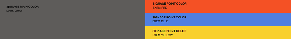 Color Scheme : 진중한 이미지의 다크그레이 컬러를 메인 컬러로, 엑셈의 정체성을 표현하는 엑셈 아이덴티티 컬러를 포인트 컬러로 사용