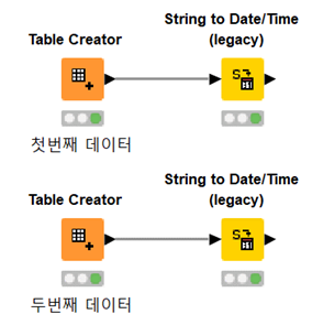 KNIME의 'String to Date/Time' 기능을 이용해 자료형을 날짜로, 형식을 'yyyy-mm-dd'로 바꿨어요.