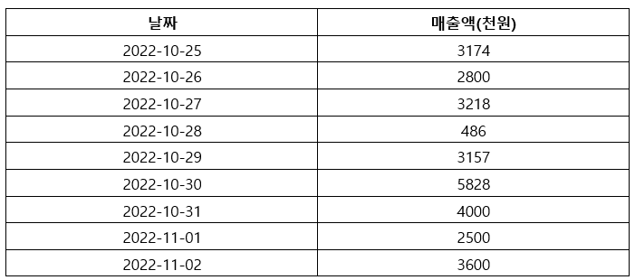 위 데이터의 차트를 그려보면 아래와 같아요.