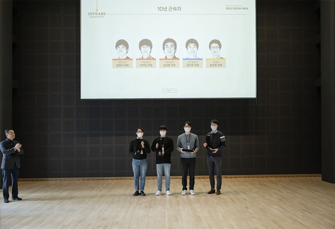 필리노베이터 수상에 이어 엑셈에서 굳건하게 성장해주신 5년, 10년 근속자께도 근속패와 함께 감사의 마음을 전했습니다.