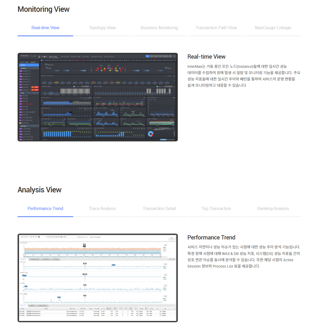 애플리케이션 관점의 End-to-End 성능 관리 솔루션하면, InterMax죠. 상세 페이지로 들어가 보겠습니다.