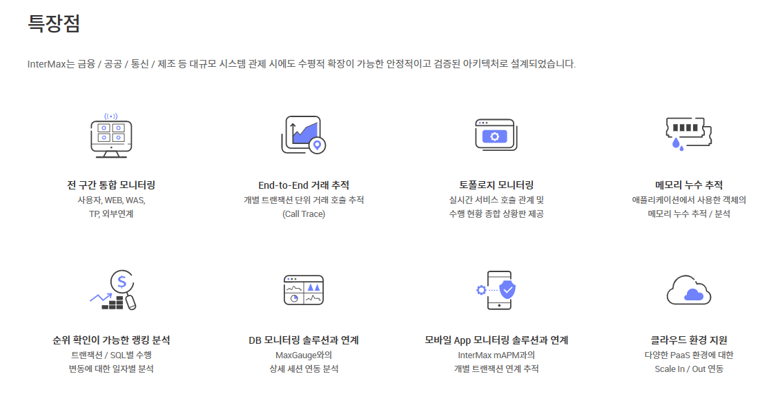 애플리케이션 관점의 End-to-End 성능 관리 솔루션하면, InterMax죠. 상세 페이지로 들어가 보겠습니다.