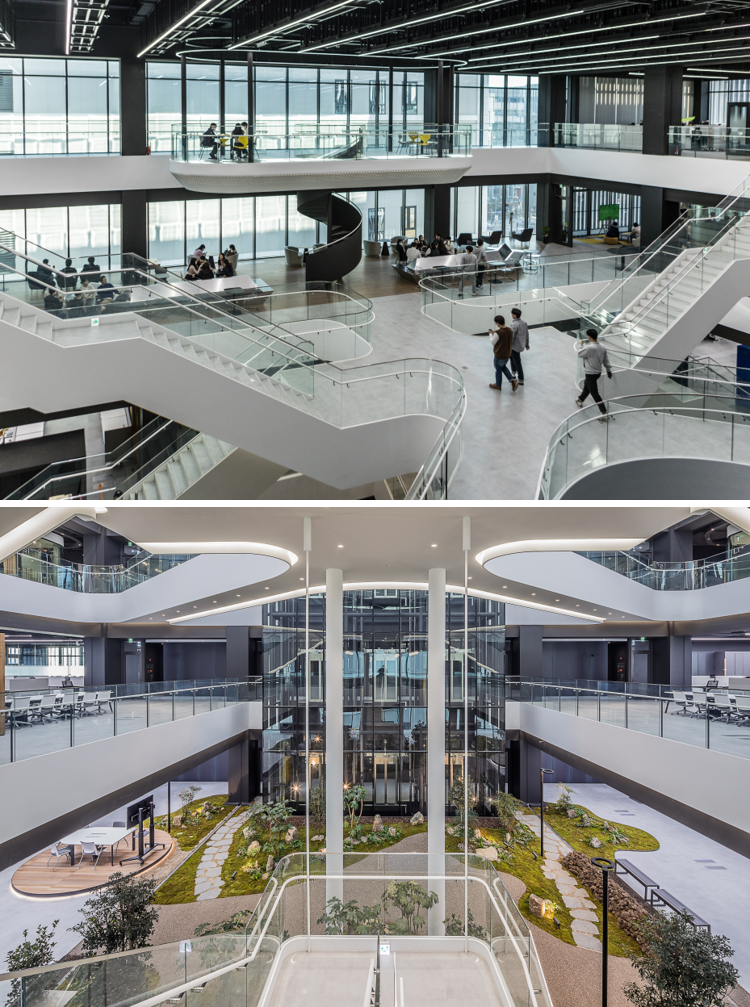 수평적 소통과 직원의 업무 몰입과 창의를 위한 각종 업무·휴게공간으로 신사옥 구성