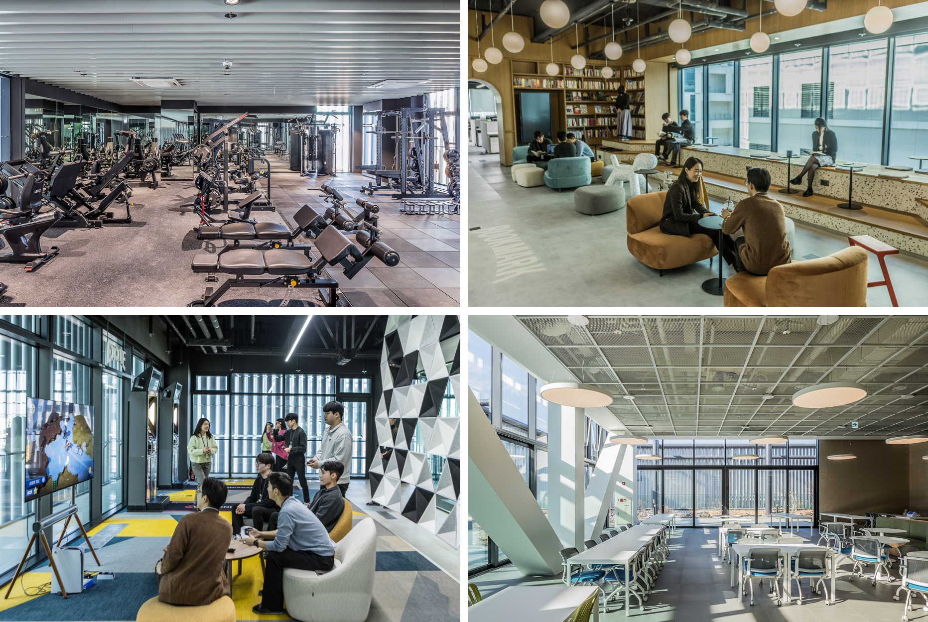 이외에도 공간 곳곳에 직원을 배려한 포인트가 자리 잡고 있다. 수면실, 여성전용 휴게실, 피트니스센터, 게임 존, 직원 식당, 카페테리아, 라이브러리를 자유롭게 이용 가능하다. 특히 카페테리아는 전문 바리스타가 상주하며, 직원 식당에서는 전문 셰프가 만드는 일품요리와 외근직을 배려한 각종 테이크아웃 음식들이 제공된다. 또 가장 전망이 좋은 최고층에는 직원 식당과 정원이 있어 직원들이 기분 좋게 식사할 수 있다. 게임존에선 다트 머신, 콘솔 게임 등을 자유롭게 즐기며 업무 스트레스를 해소할 수 있다. 또 피트니스센터에는 호텔급 운동시설이 구비돼 있으며 전문 헬스 트레이너가 건강상담과 PT를 담당한다.