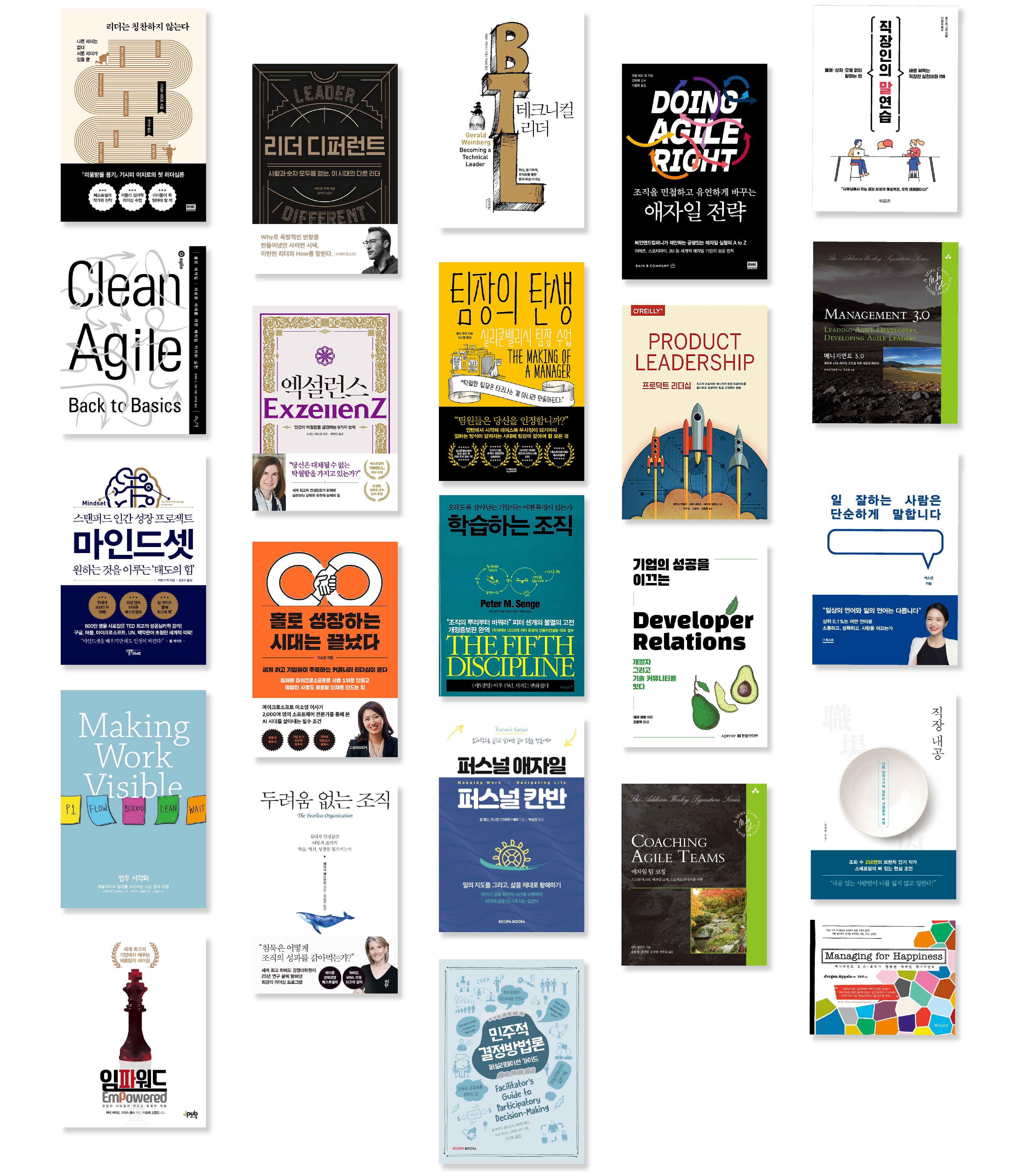 그리고 작년 도서 구매 이력을 통해 주목할 만한 또 한 가지는 바로 엑셈 리더들이 리더십, 개인 성장, 팀원 동기 부여, 구성원 관리와 코칭, 소통과 관련하여 정말 많은 도서를 읽었다는 것입니다. 리더십과 관련된 도서를 보실 계획이라면 아래 목록 중에서 골라보셔도 될 것 같아요.