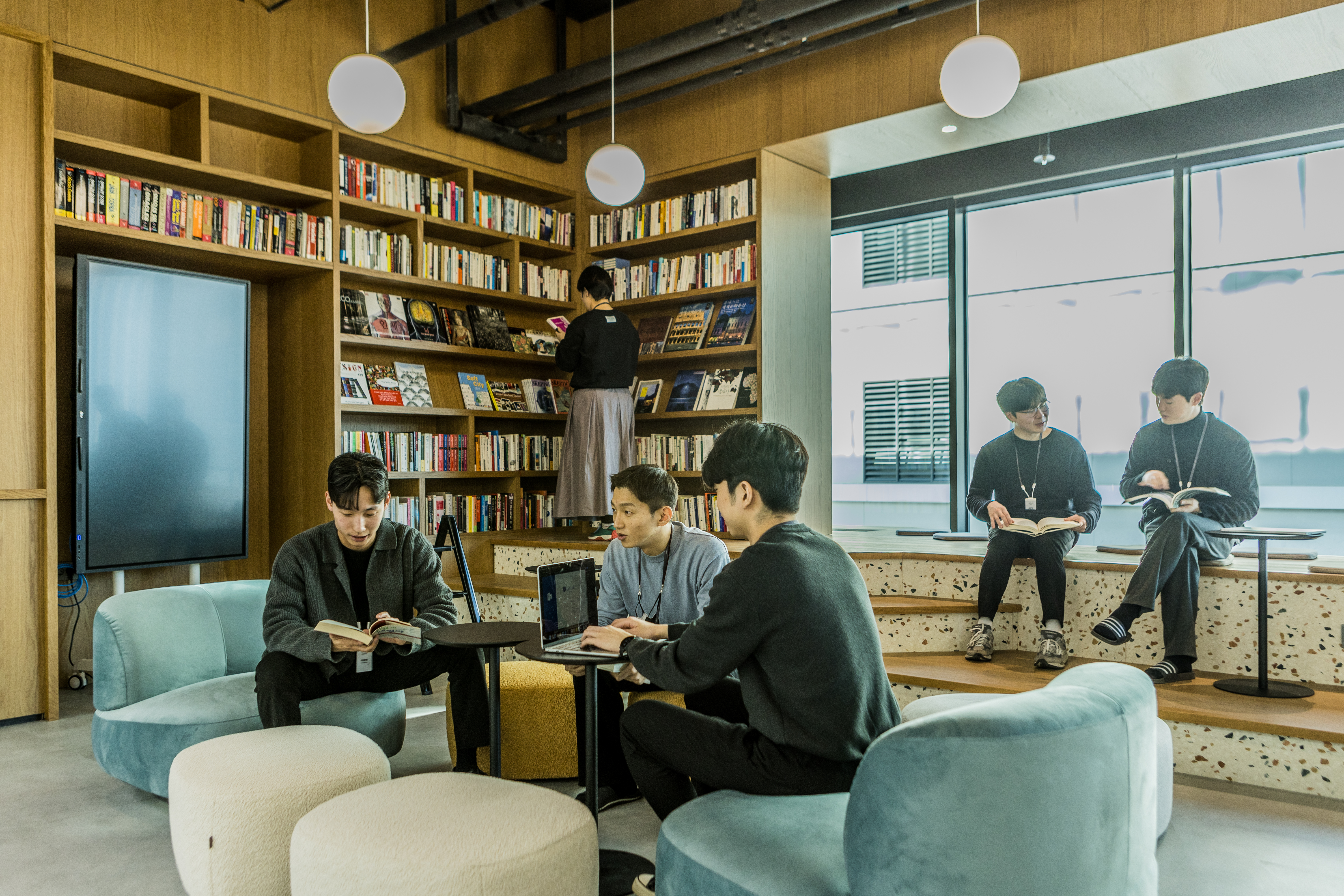 엑셈은 오래전부터 독서 문화가 잘 형성되어 왔습니다. 업무 역량에 도움이 되는 책이라면 언제든지 회사에서 구매 지원하고, 책을 기반으로 팀 스터디와 발표, 서평 작성 등 다양한 형태의 책과 관련된 이벤트를 해왔습니다. 책을 더 많은 사람들과 공유하기 위해 Book SNS 씽클립도 엑셈이 직접 개발한 것이죠. 신사옥으로 이전하고 책을 읽을 수 있는 환경이 더욱 좋아졌습니다. 더 많은 책을, 더 쾌적한 환경에서 읽을 수 있도록 말입니다.