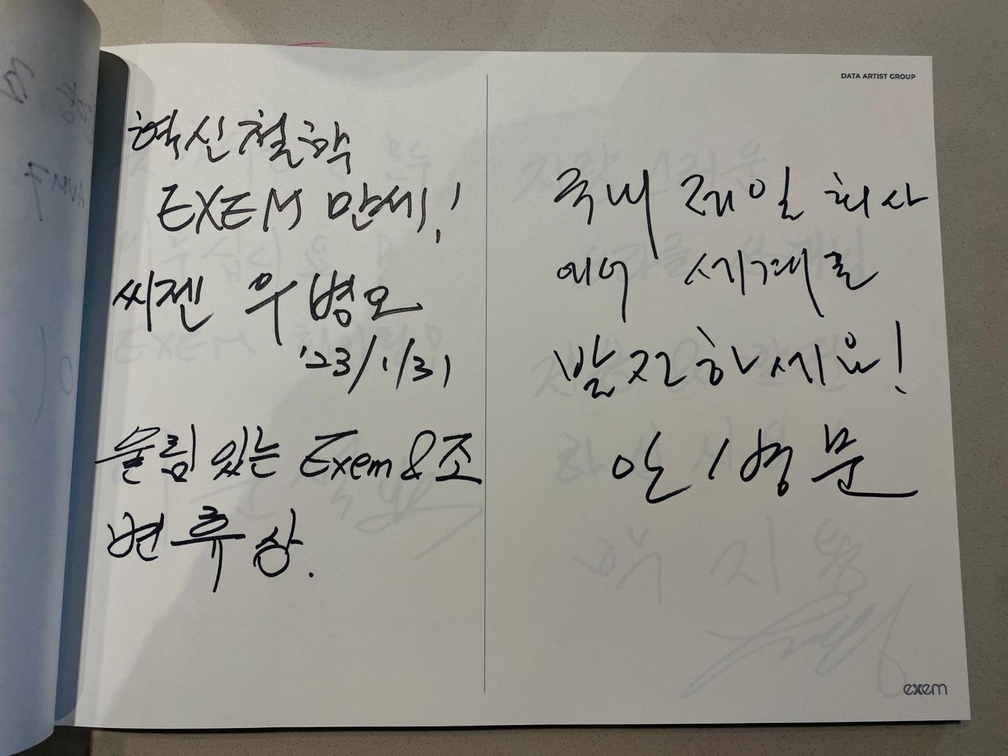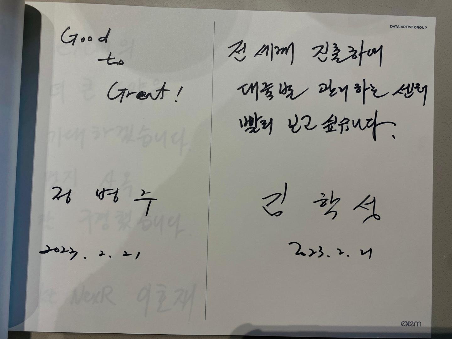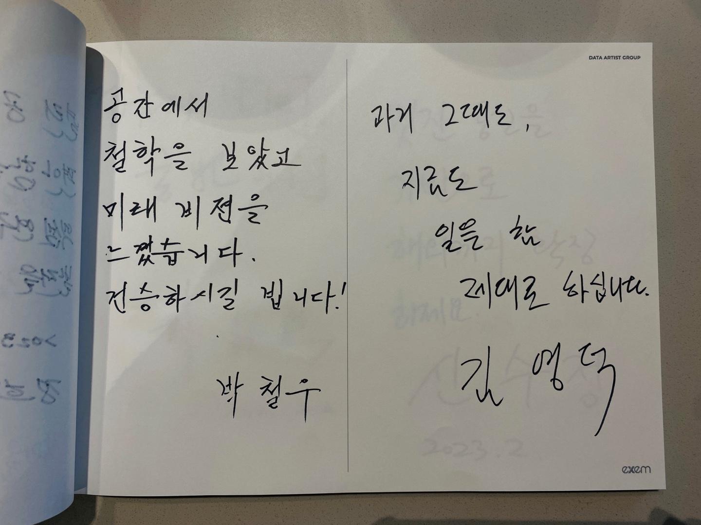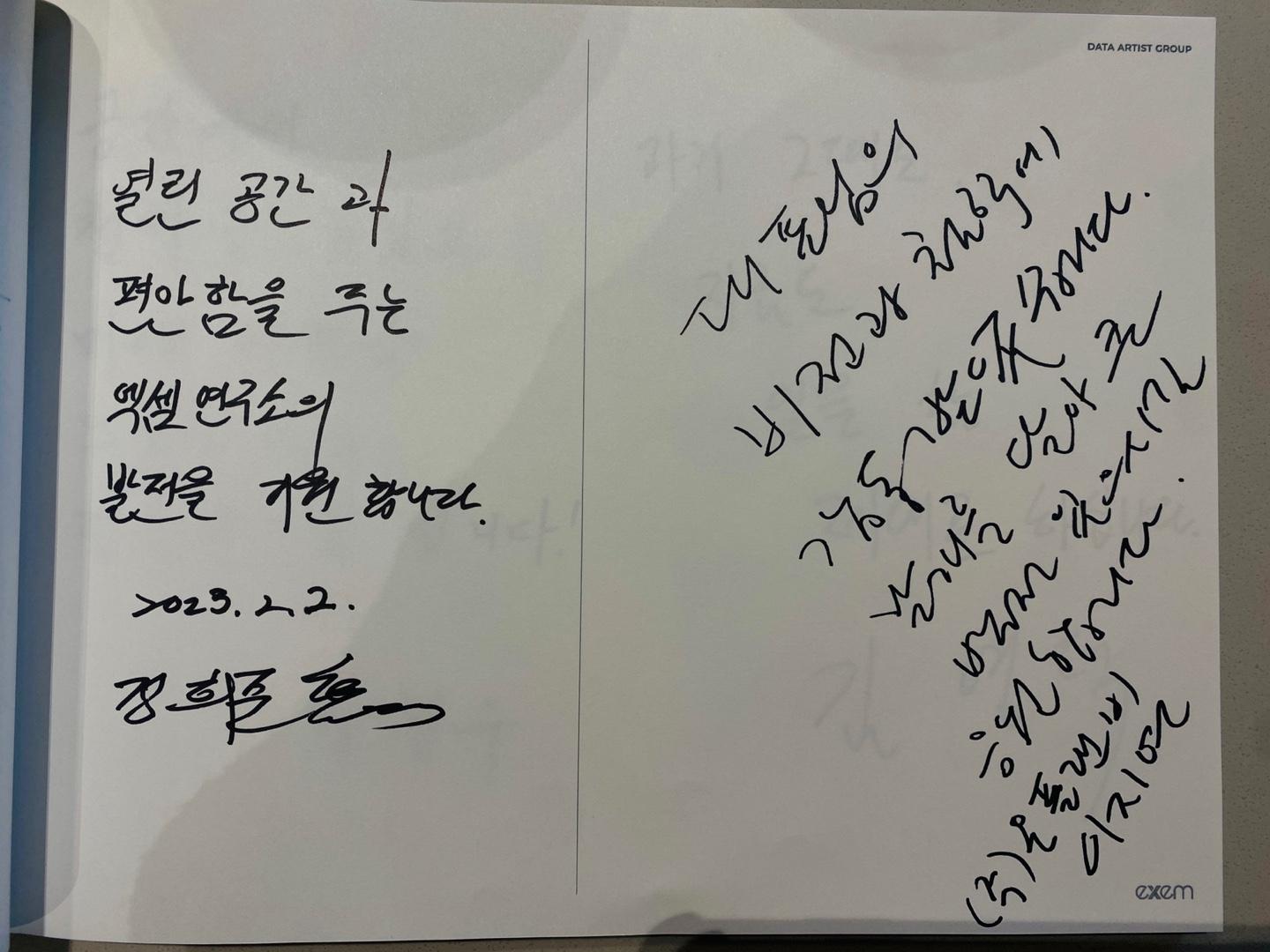 국산 소프트웨어 솔루션 최고경영자 모임(일명 국솔모), 한국SW산업협회, 한국데이터산업협회 등 국내 IT 산업을 이끄는 IT 업계 대표님들을 비롯해, 상장사 대표님들, 교수님들, 늘 발빠르게 엑셈 소식을 전해주시는 기자님들, 증권사와 기관투자자분들, 엑셈 자회사 임직원 여러분, 작가님, 건축설계사님 등 엑셈과 직간접적으로 연결된 꼭 모셔야할 여러분들께 사옥 초청을 위한 초대장을 발송드렸고, 아주 흔쾌히 초청을 수락해주셨습니다. 정성스럽게 모시고 사옥 투어를 하기 위해 한날에 행사를 진행하기 보다는 여러날을 나누어 입주식을 진행하기로 했습니다. 하루에 초청 인원이 17분이 넘지 않도록! 그래서 붙은 이름이 'Office Warming Month'. 1월 말부터 2월 한달 내내 엑셈 캘린더를 빼곡히 채운 일정들은 바로 엑셈 신사옥 입주식이었습니다. 이런 표현조차도 엑셈이 최초일거라 생각해요. :)
