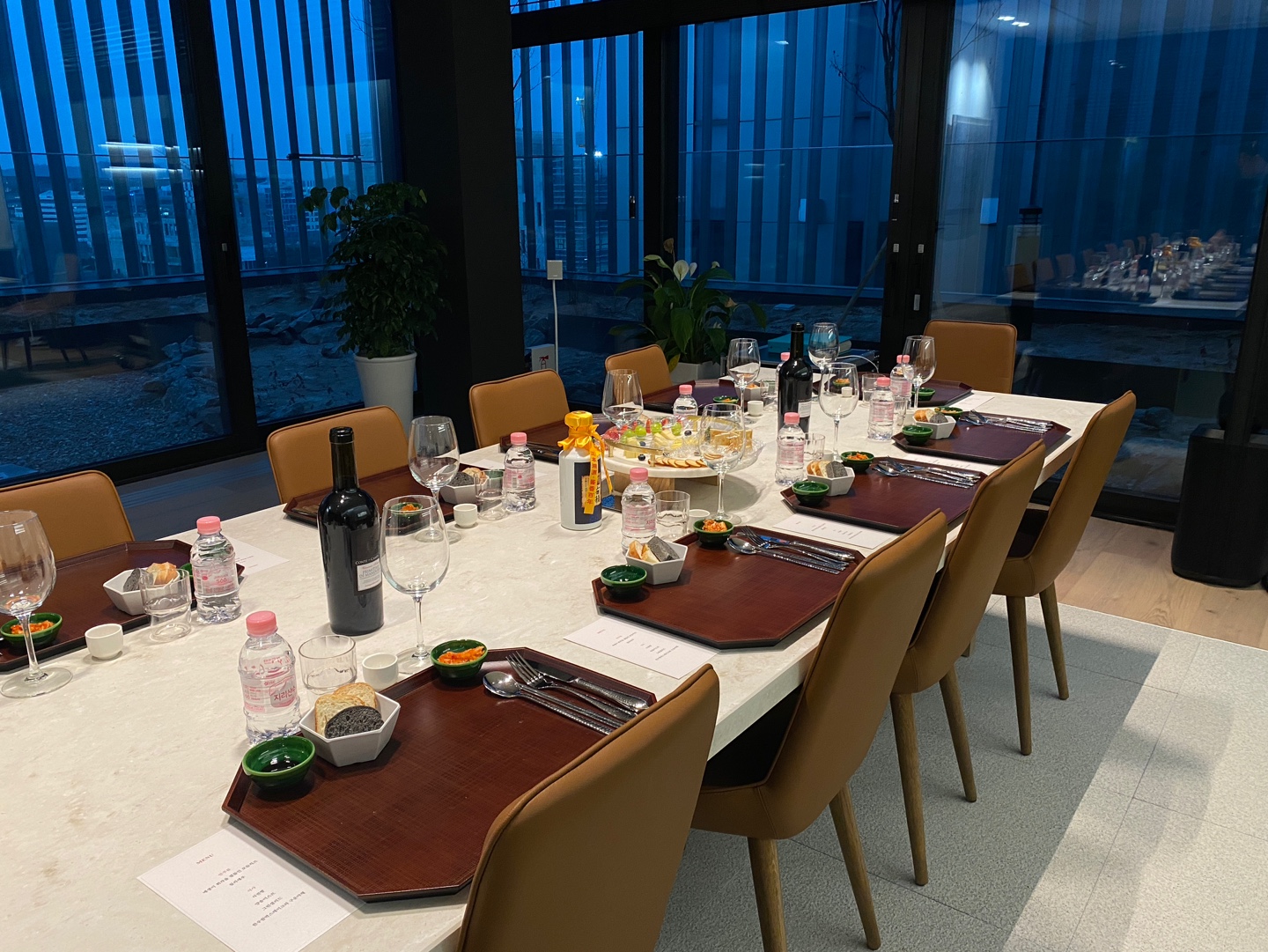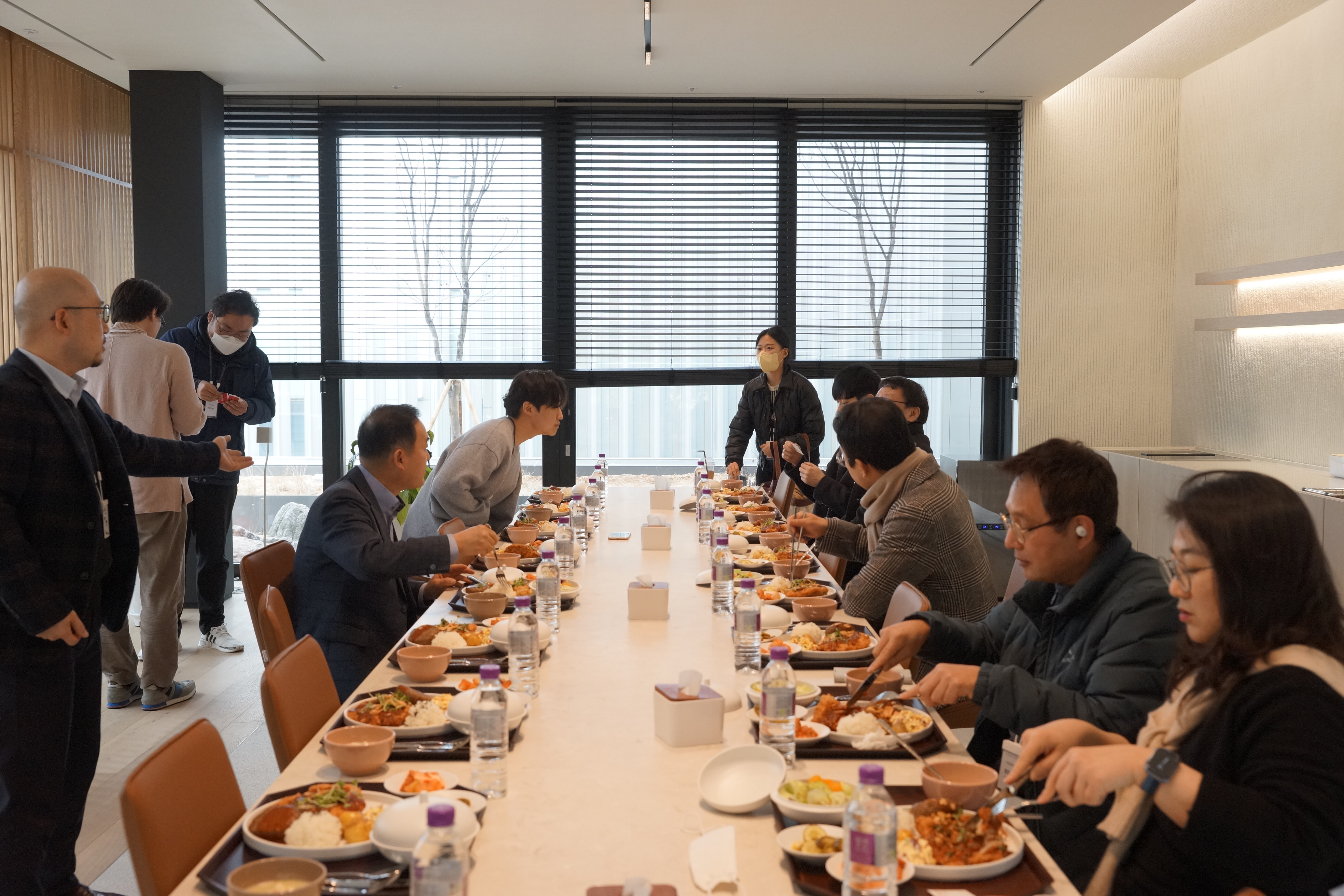이렇게 7층부터 1층까지 사옥 곳곳을 둘러보았습니다. 마지막 코스이자 사옥 투어의 꽃인 8층 사내 식당으로 이동해, 프라이빗 다이닝룸에서 엑셈 임직원들이 이용하는 동일 메뉴로 점심 식사를 합니다. 그만큼 평소 직원들이 이용하는 메뉴에 자신이 있다는 얘기겠죠.