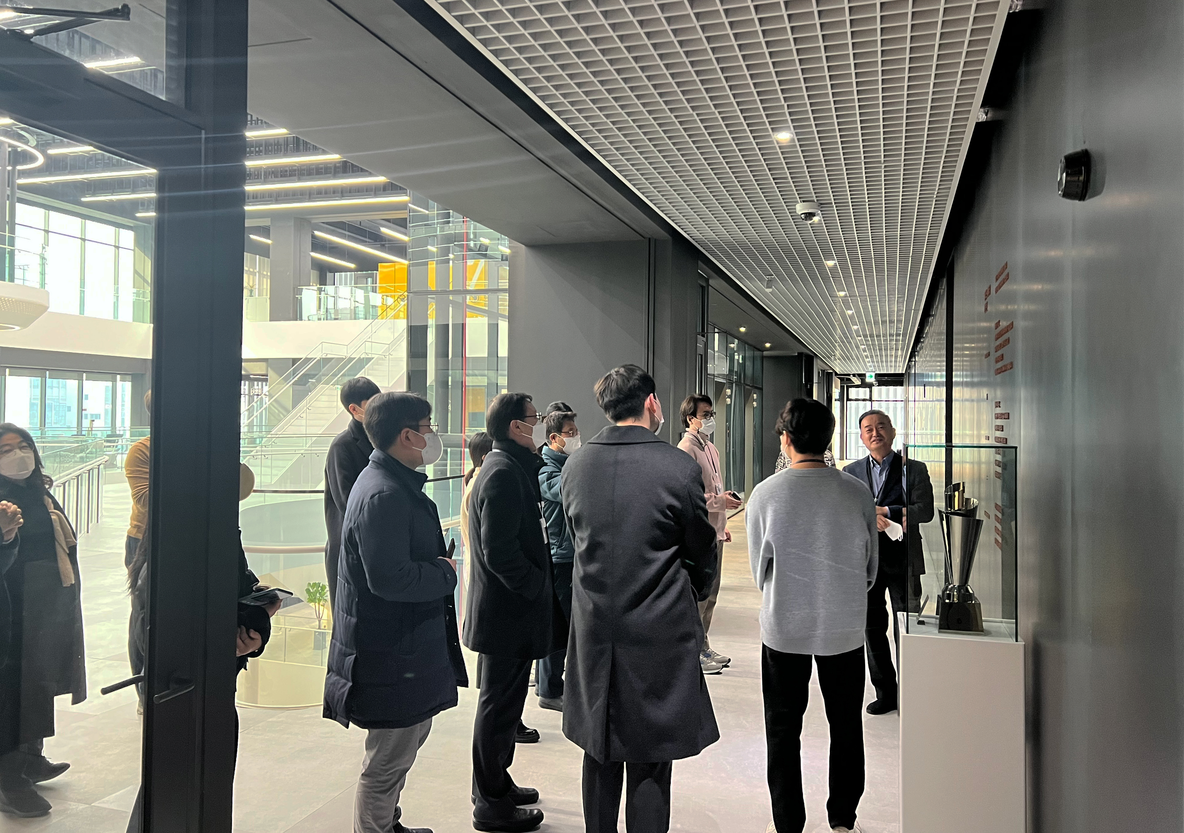 10시 반부터 VIP 미팅룸에서 입주식 환영 인사와 함께, 엑셈 신사옥에 어떤 공간 철학을 담았는지 소개가 시작됩니다.