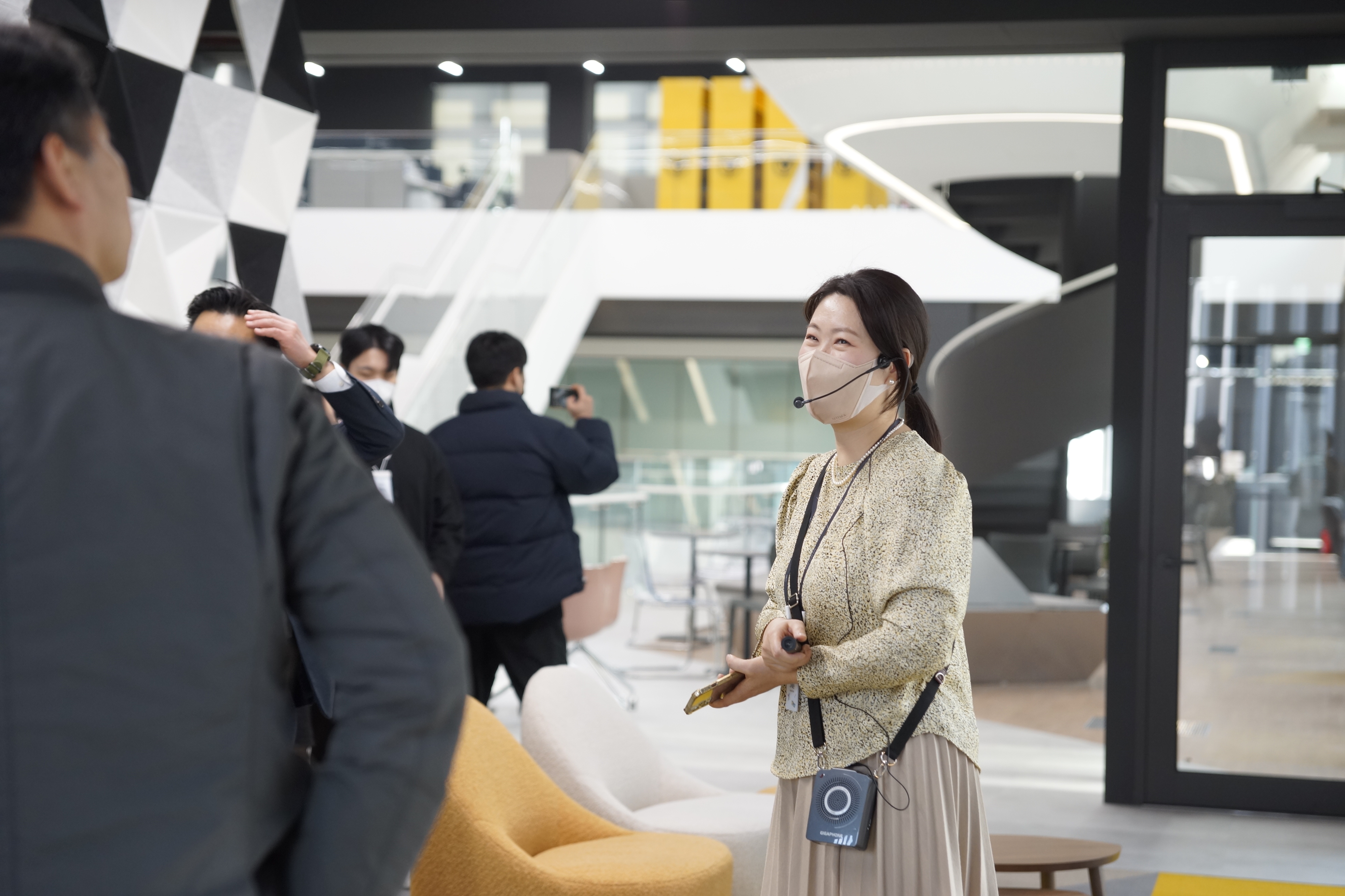 본격적으로 입주식의 메인 행사인 사옥 투어가 시작됩니다. 공간 설명은 NOW 엑셈 뉴스레터에도 자주 소개됐었죠? 공간 전문가 고혜은 부장이 담당합니다.