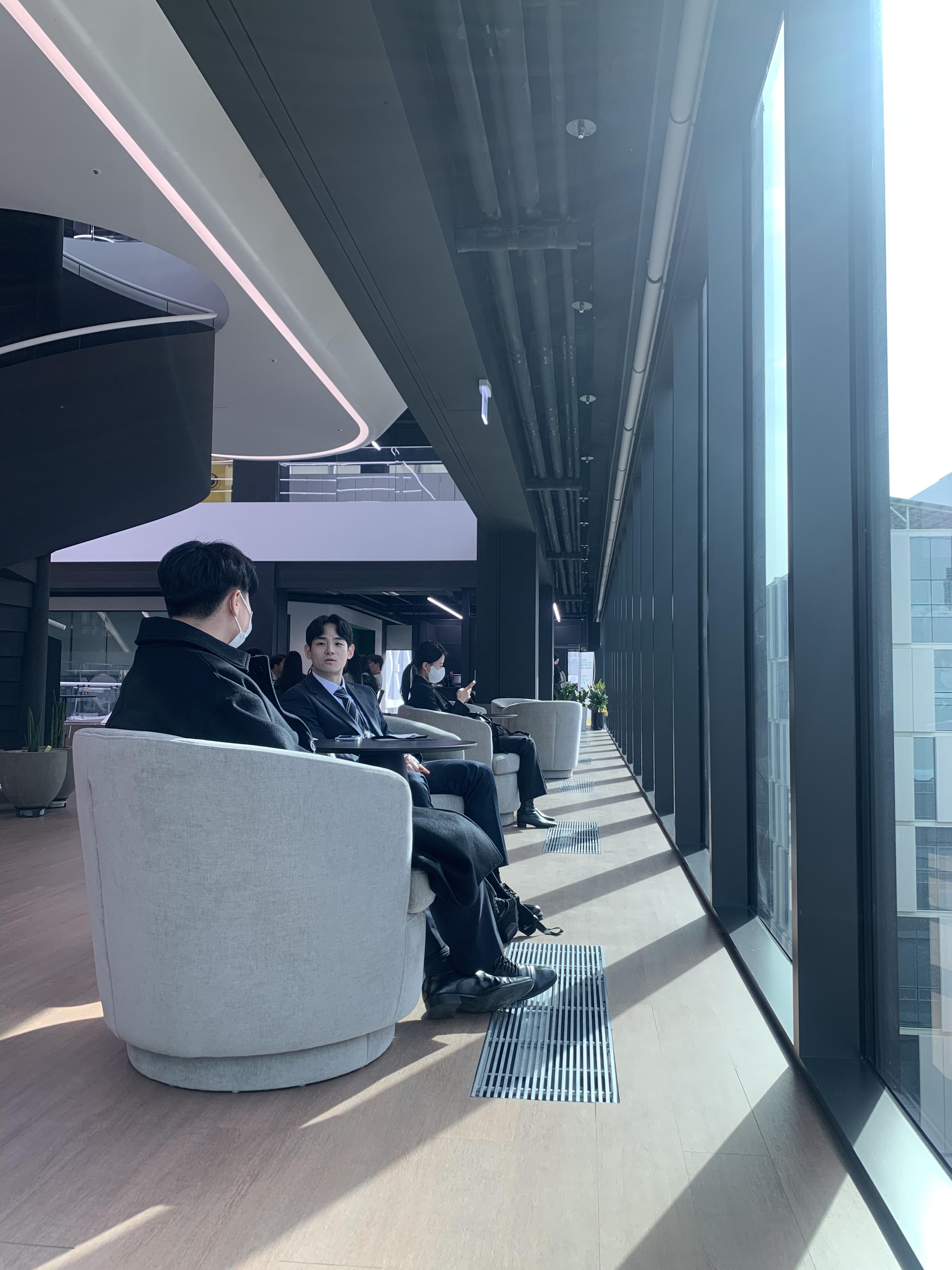 1차 면접 때와 다르게 엑셈 사옥의 두 번째 방문은 좀 더 편안해진 모습이네요. :) 또한 지원자 분들도 1차 면접 때 한 번 봐서인지 자연스럽게 인사도 나누고 서로 정보도 공유하며 응원해주는 모습이 너무 보기 좋았습니다. 친구처럼!