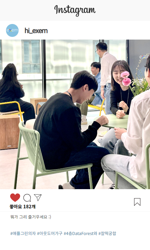 엑셈에도 햇살이 따스하게 드리우니, 봄 시즌이랑 찰떡궁합인 각양각색의 엑셈 신사옥 가구들과 이와 어우러진 엑셈 사람들이 예뻐 보이네요. 최근에 친해진 챗GPT에게 '가구'와 '사람'하면 뭐가 떠올라? 라고 물으니, 이렇게 답합니다.