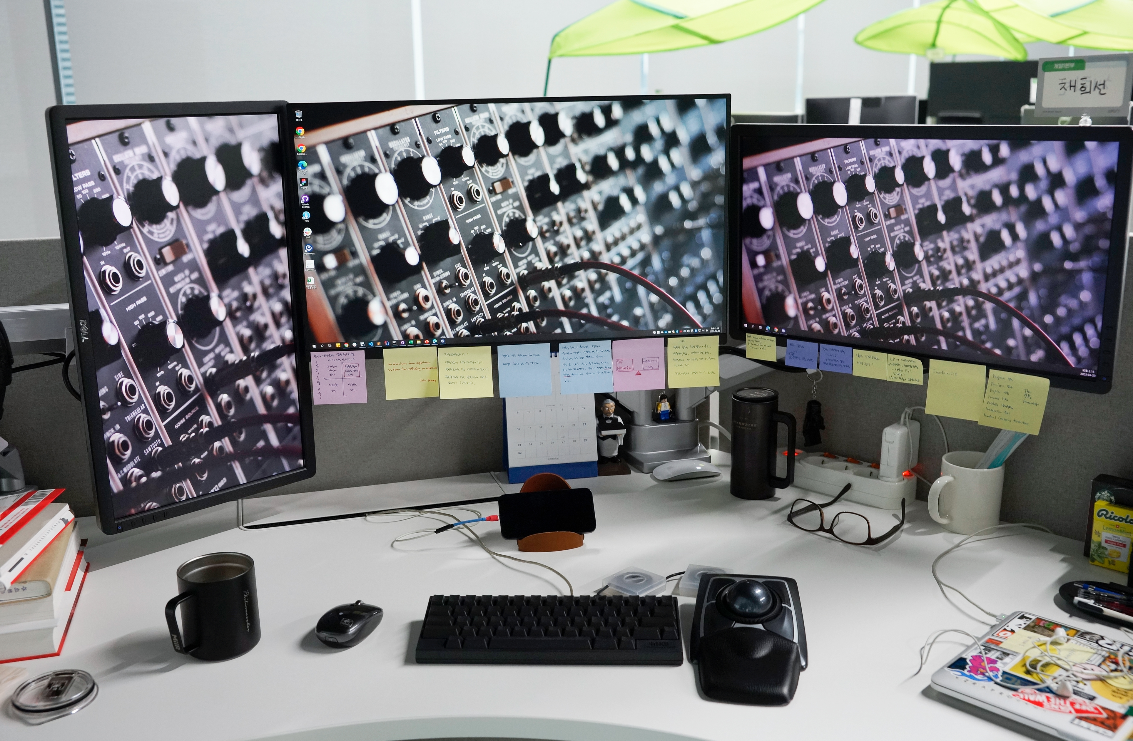 “개발자한테 듀얼 모니터는 기본이며, 노트북까지 켜면 눈 앞에 화면들이 3개 이상입니다.