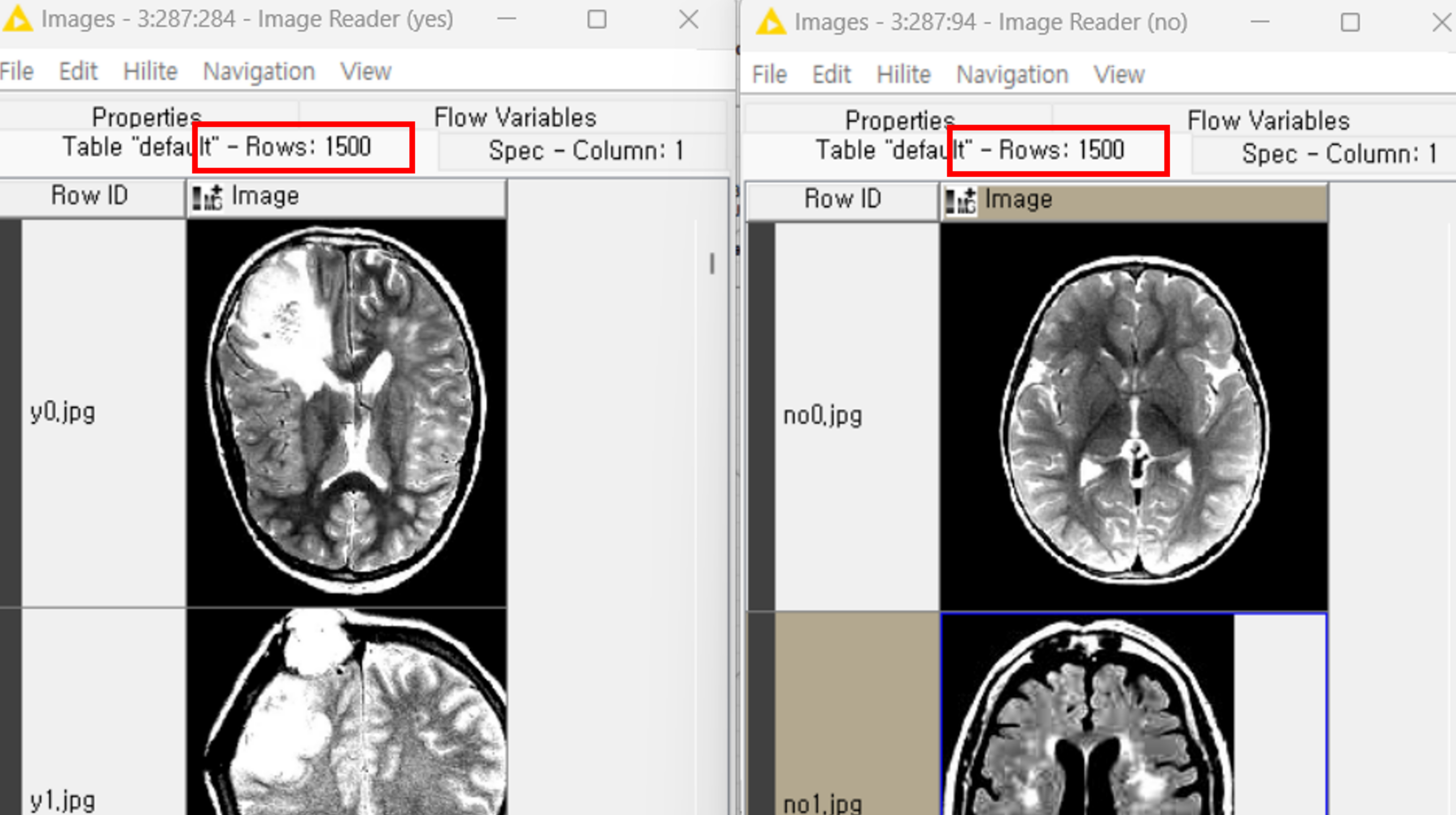 네! 위에서 보았던 뇌종양 양성과 음성의 MRI 이미지 데이터로 뇌종양 진단을 한다면 아래와 같이 할 수 있어요.
