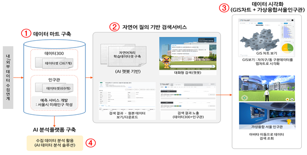 NLP 기반 챗봇, 메타버스 공간 ‘서울 인구관’, AI 분석 플랫폼 등 다양한 서비스 구현