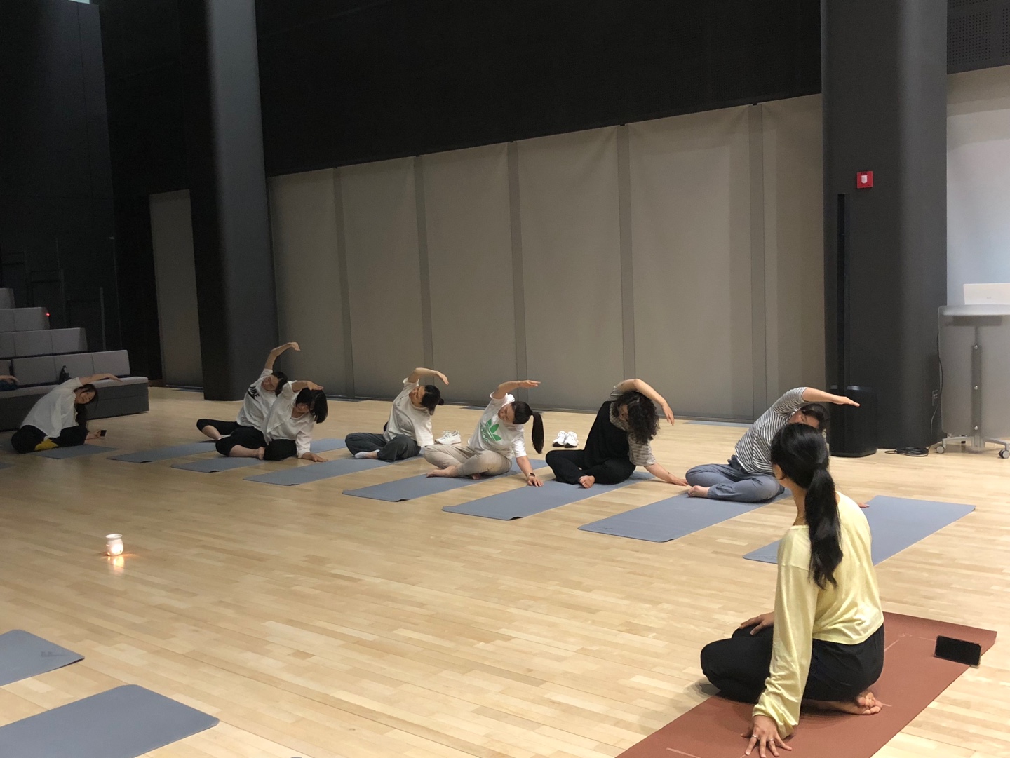 홀에 도착하니 요가 매트가 정돈되어 있고, 명상 음악이 재생되고 있습니다. 원하는 자리에 착석 후 강사님의 나긋한 목소리에 맞춰 시작합니다. 그리고는 바로 깨닫기 시작합니다. 내 몸을 내 맘대로 움직일 수 없다는 것을!