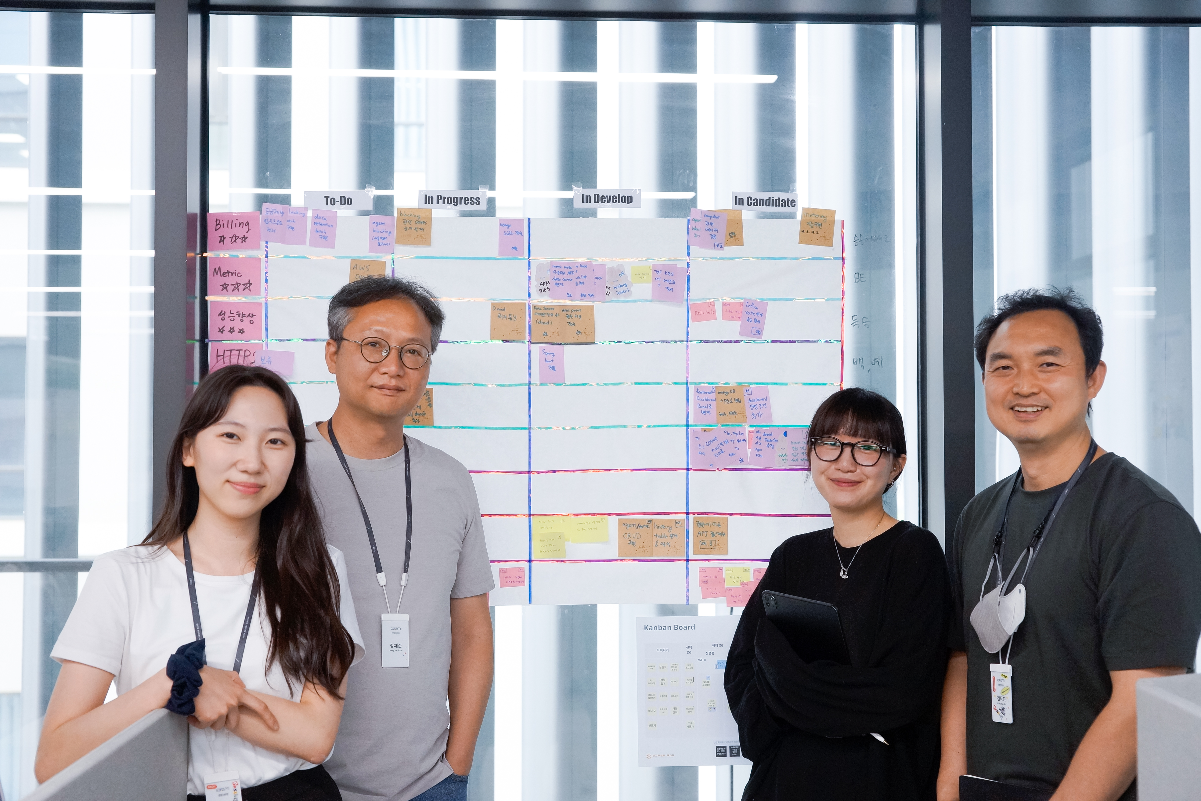 데이터세이커를 기획하고 개발한 핵심 인력이 모인 엑셈 개발2본부의 하루는 스탠드업 미팅(Stand-up Meeting)으로 시작됩니다. 미팅 시간은 길지 않게, 어제 저녁은 뭘 먹었는 지부터 시작해서 하고 있는 일을 공유하고, 과제에 대해 간단히 논의합니다. 이 자리에서 각양각색의 아이디어가 모이고, 이를 구체화하여 검증하고 개발하고 테스트를 거쳐 제품에 반영하고 있습니다. 데이터세이커는 소통의 문화 속에서 어느 한 사람의 가벼운 의견도 소외됨 없이 함께 고민하고 협업해서 만들어낸 기술 이상의 가치를 담은 솔루션입니다. 제품의 완성도가 높아질수록 한 사람 한 사람의 성장도 함께 했습니다. 이제 고객의 요구 사항을 잘 듣고 긴밀히 반영할 차례입니다.