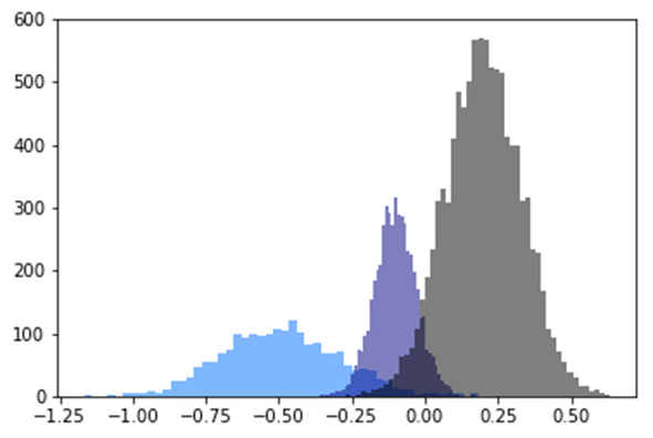 | 가우시안 분포 (파란색) | 2,000 | -0.5 | 0.2 |