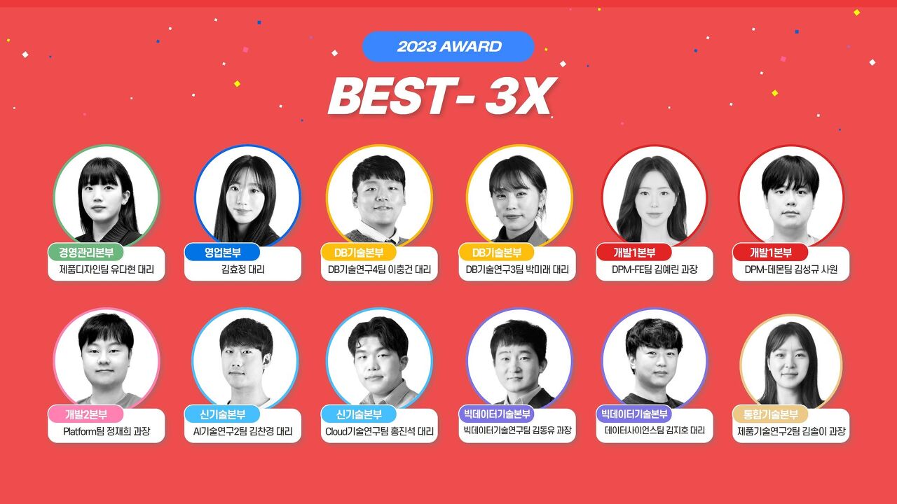 좋은 환경, 좋은 동료들과 함께 일할 수 있었기 때문에 이 상을 받게 된 것 같습니다. 항상 동료분들께 감사드리며, 앞으로도 DB기술본부와 팀의 성장을 위해 최선을 다하겠습니다.