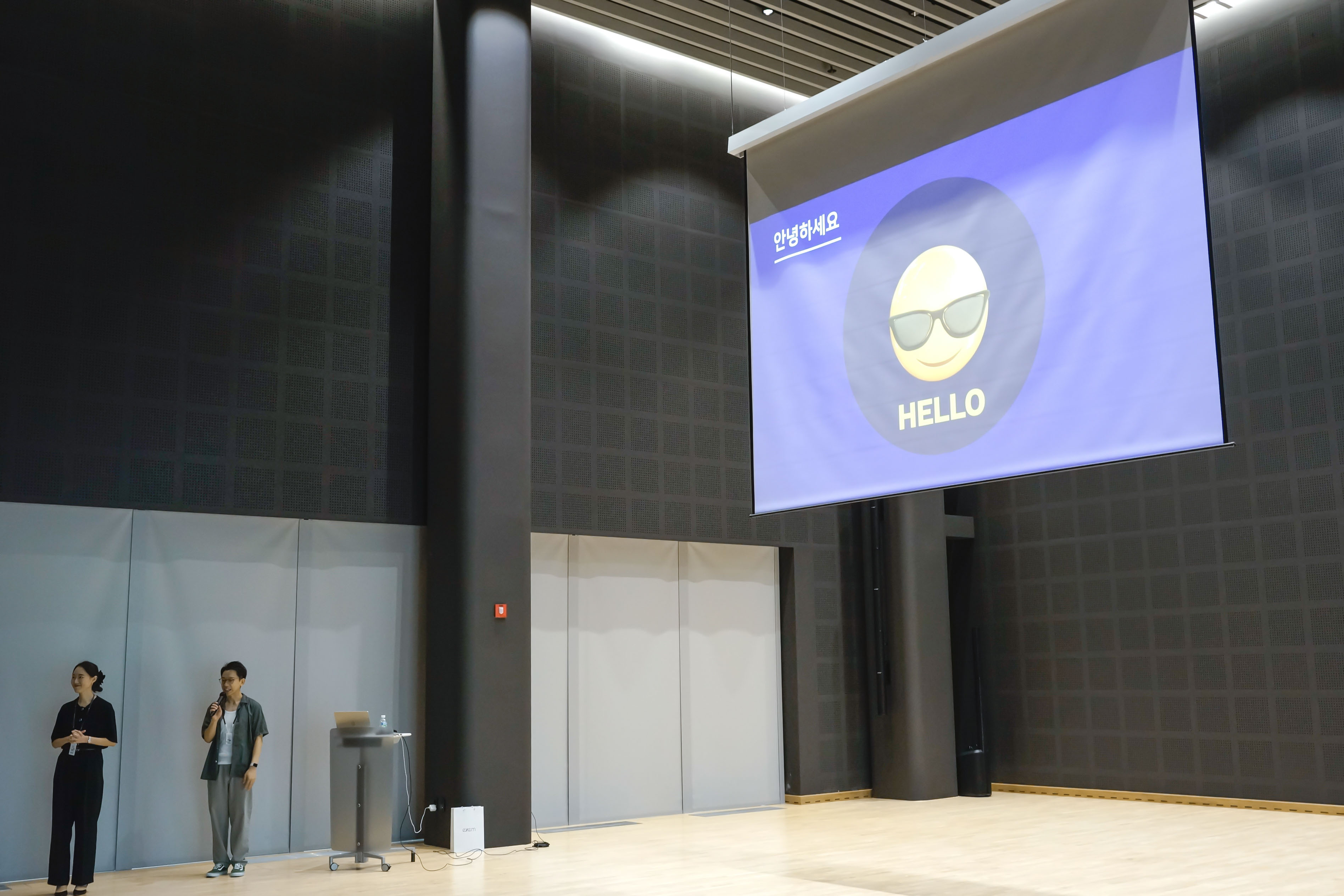 1층 필리노베이터 홀에서 본격적인 오후 세션을 시작하기 전, 뇌에 혈액 공급 부족으로 졸릴 법한 친구들을 위해 NEW JEANS 최신 뮤비를 틀며, 덕분에 같이 감상했네요. ^ㅇ^