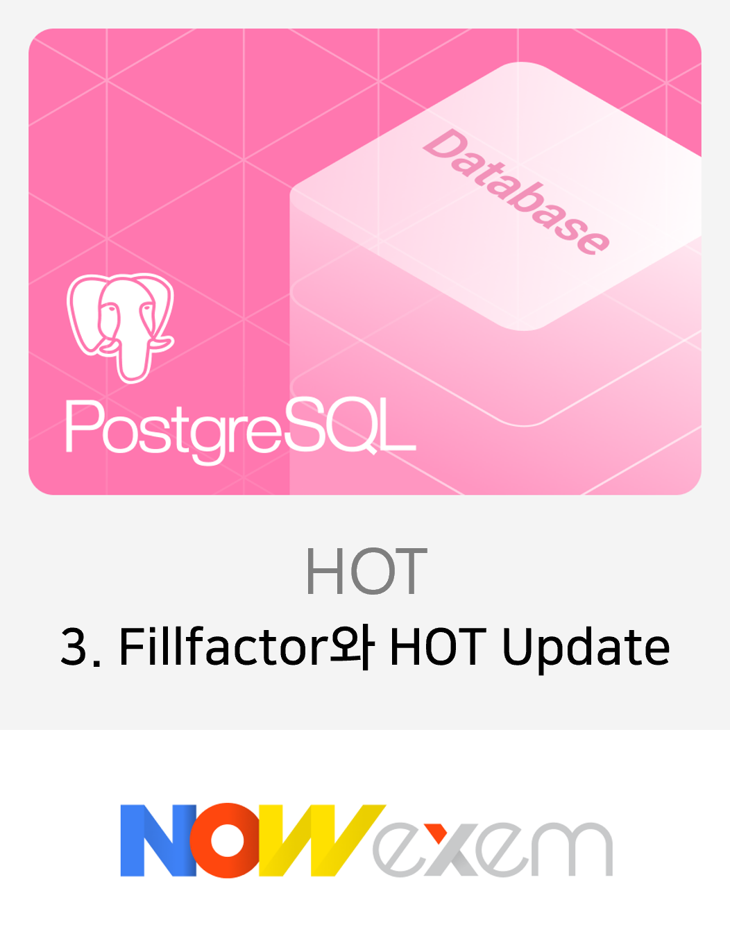 - Fillfactor가 작을수록 HOT Update 발생 가능성은 높습니다.